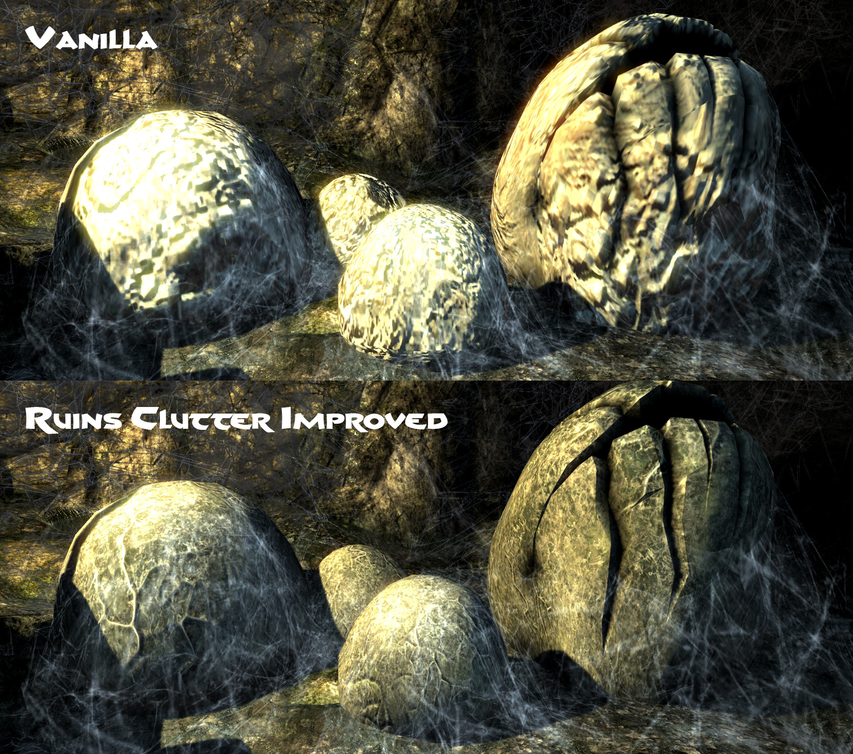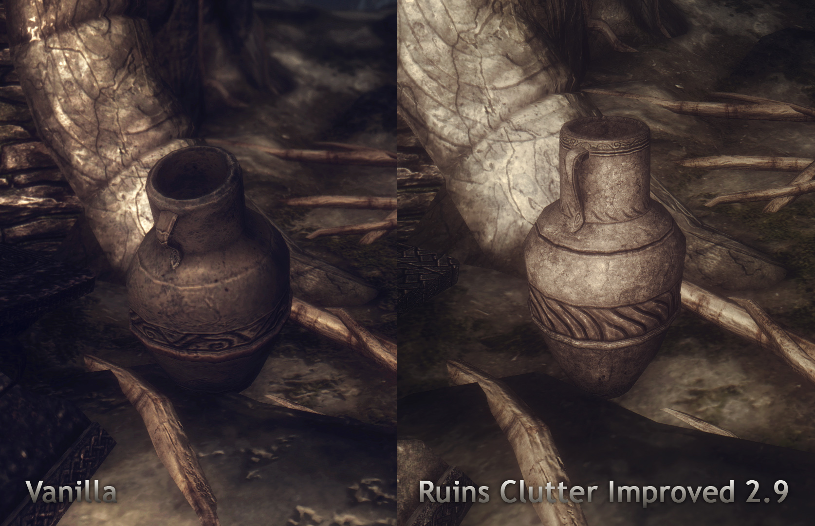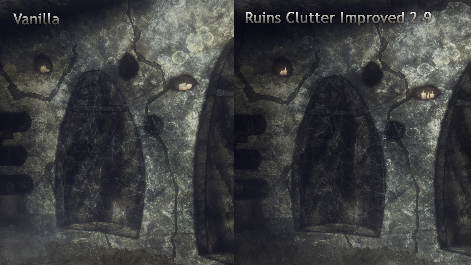 Мод улучшает уродливые оригинальные текстуры и модели различных предметов обстановки в руинах, а также исправляет UV-ошибки. Теперь они выглядят заметно красивее и детальнее.