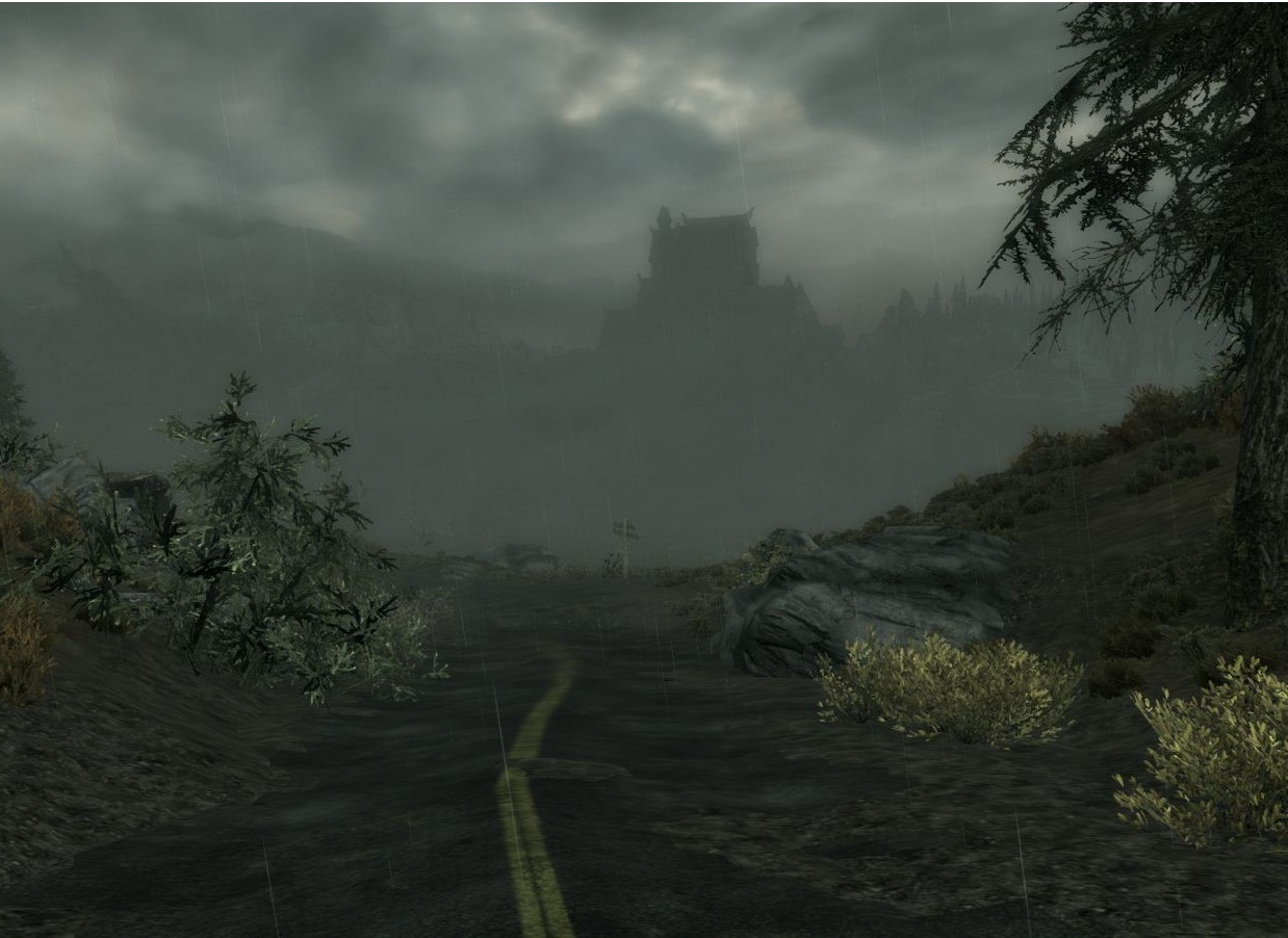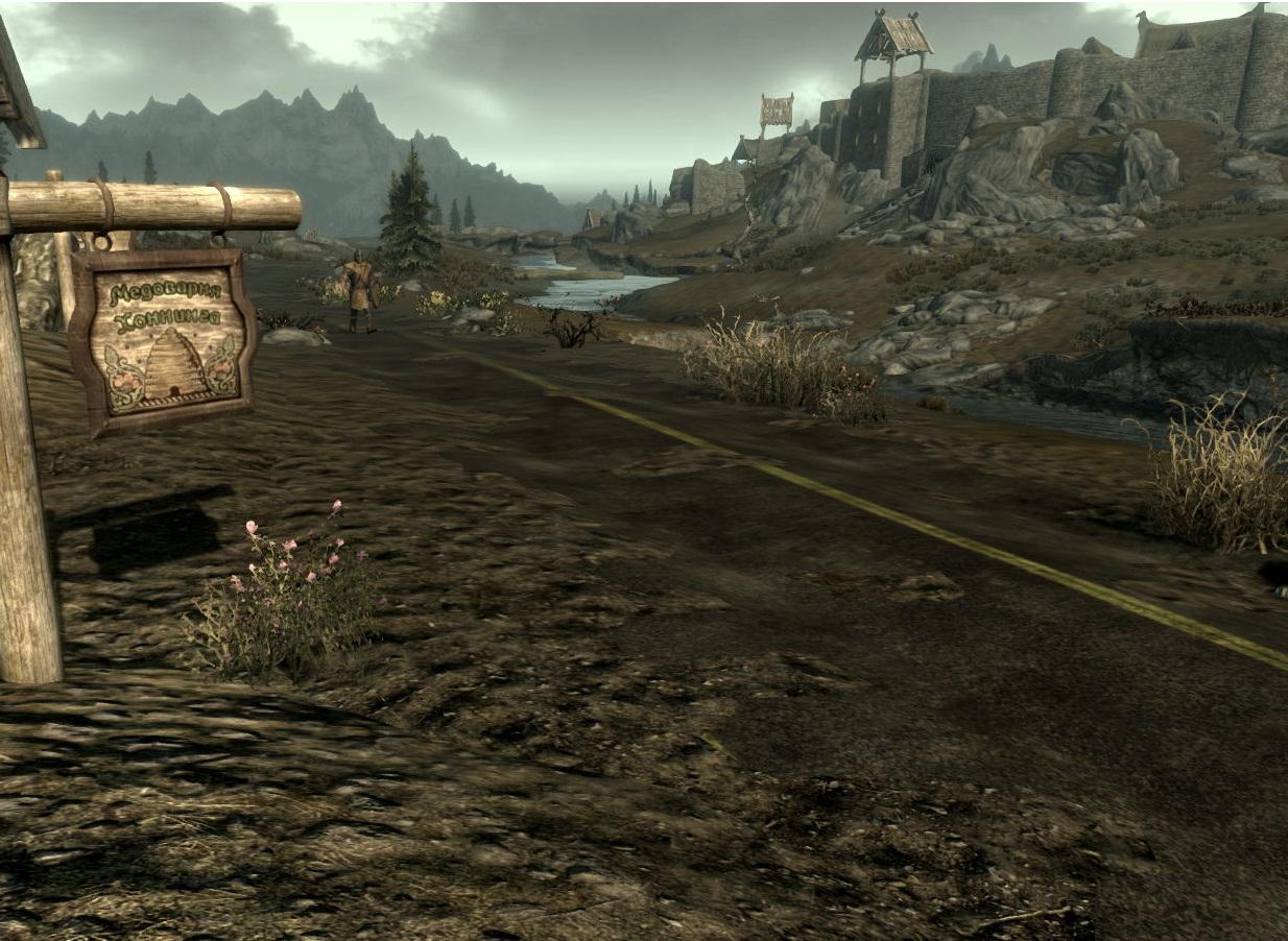 Ретекстур изменяет обычный вид дороги в Скайриме на асфальтовую. Всё вроде бы хорошо, только вот погода в Скайриме суровая, ветра сильные и промозглые, и эрозия почвы - обычное дело! Асфальтные дороги сильно разрушились. А с исчезновением двемеров знание технологии создания асфальта, также кануло в бездну.