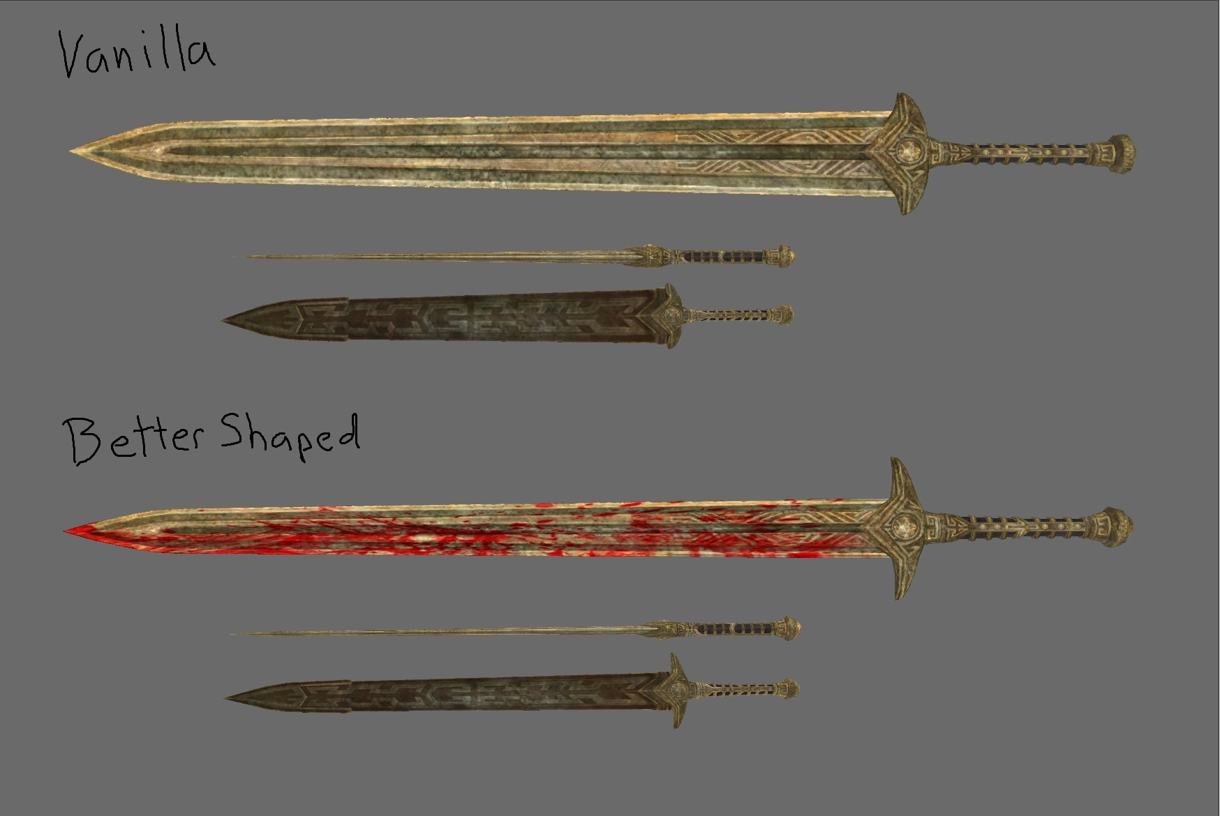 Данный реплейсер посвящен приданию мечам более реалистичной, логичной и правдоподобной формы, свойственной настоящему оружию. С ним форма клинков станет утонченнее, а лезвия куда острее.
