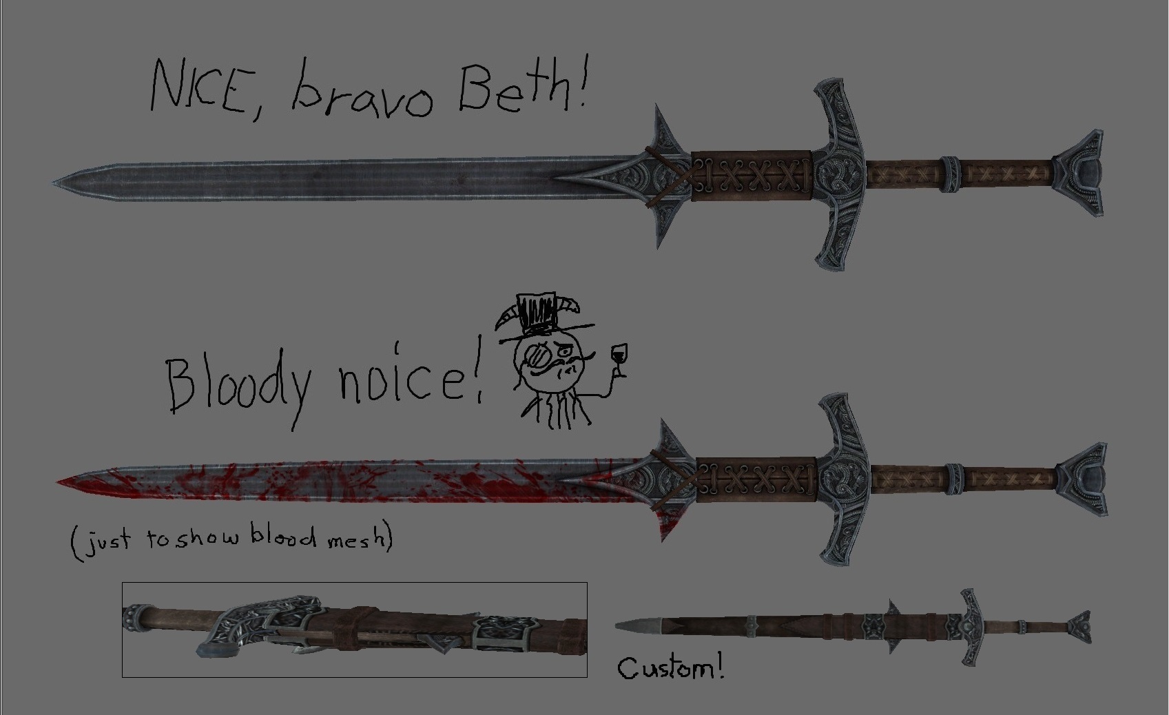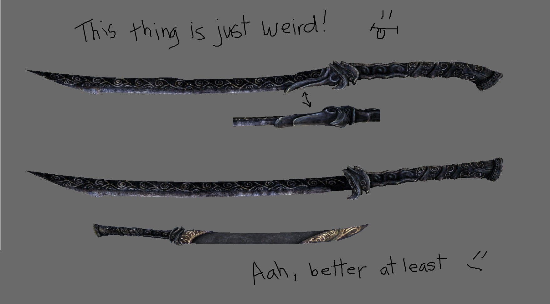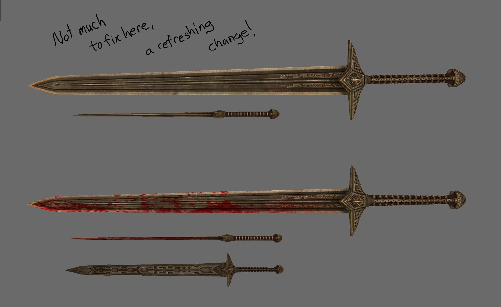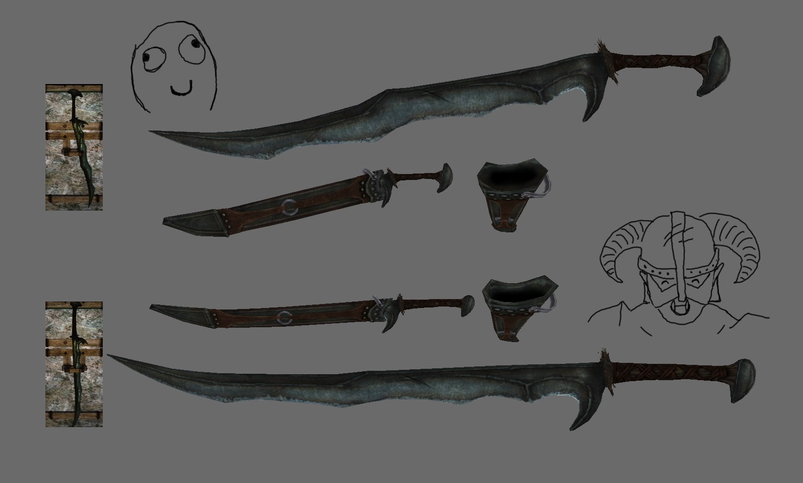 0## оружие - мечи, двуручные мечи и кинжалы, также содержит загрузочные экраны для соответствующего оружия.