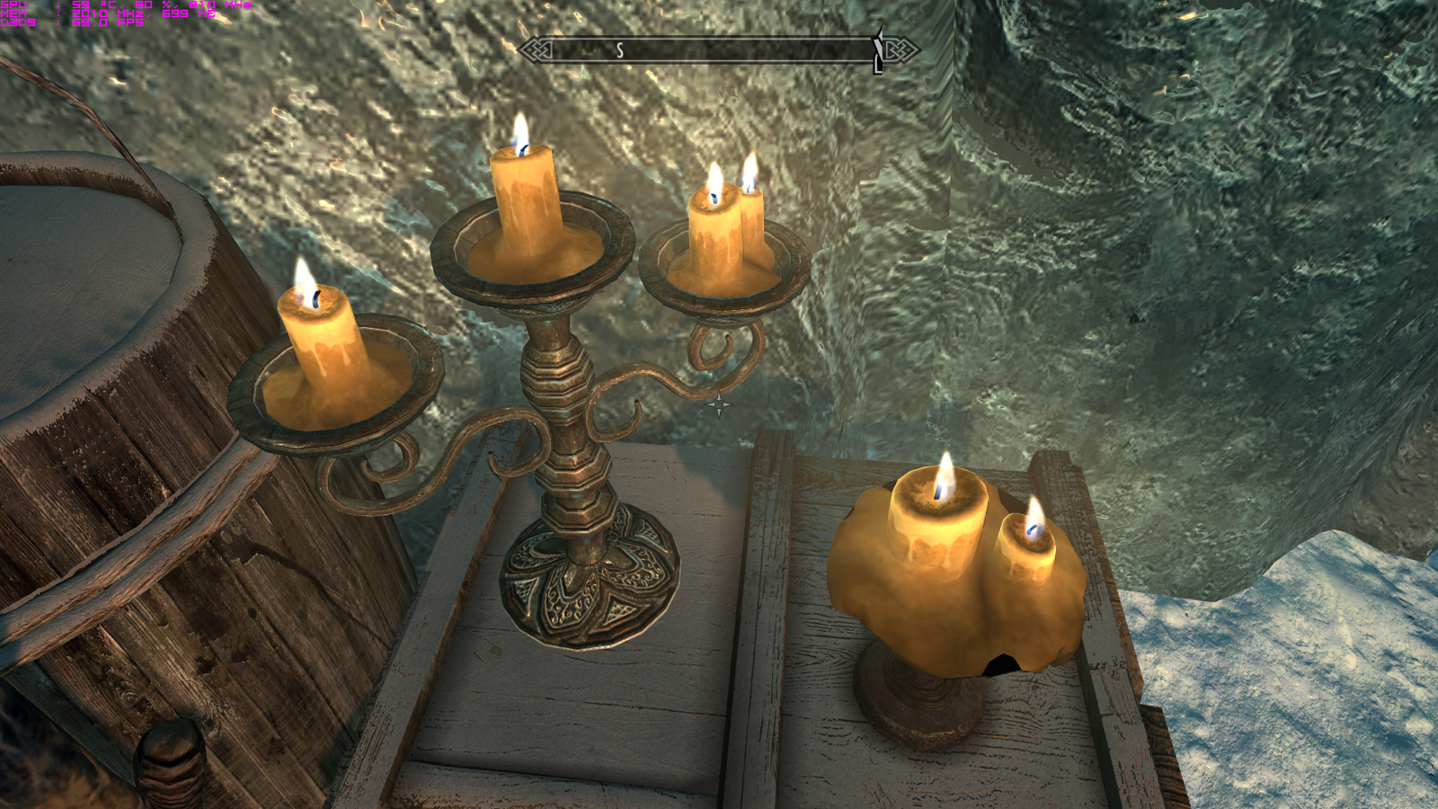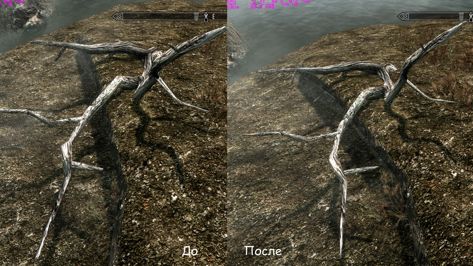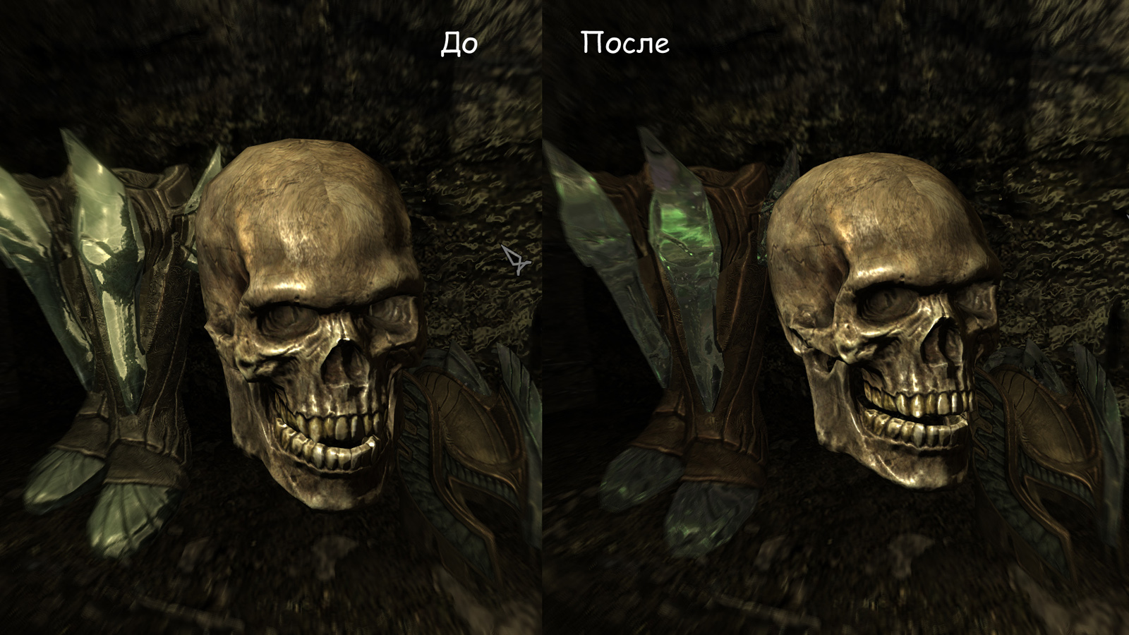 Кроме того, для некоторых объектов используются другие технологии, улучшающие их качество. Например, эффект рефракции и/или полупрозрачности для ледяного атронаха, ледяных привидений, светящихся грибов в Черном Пределе, сосулек и тд. GEMS содержит файлы для всех трех DLC, но не требует их для работы.
