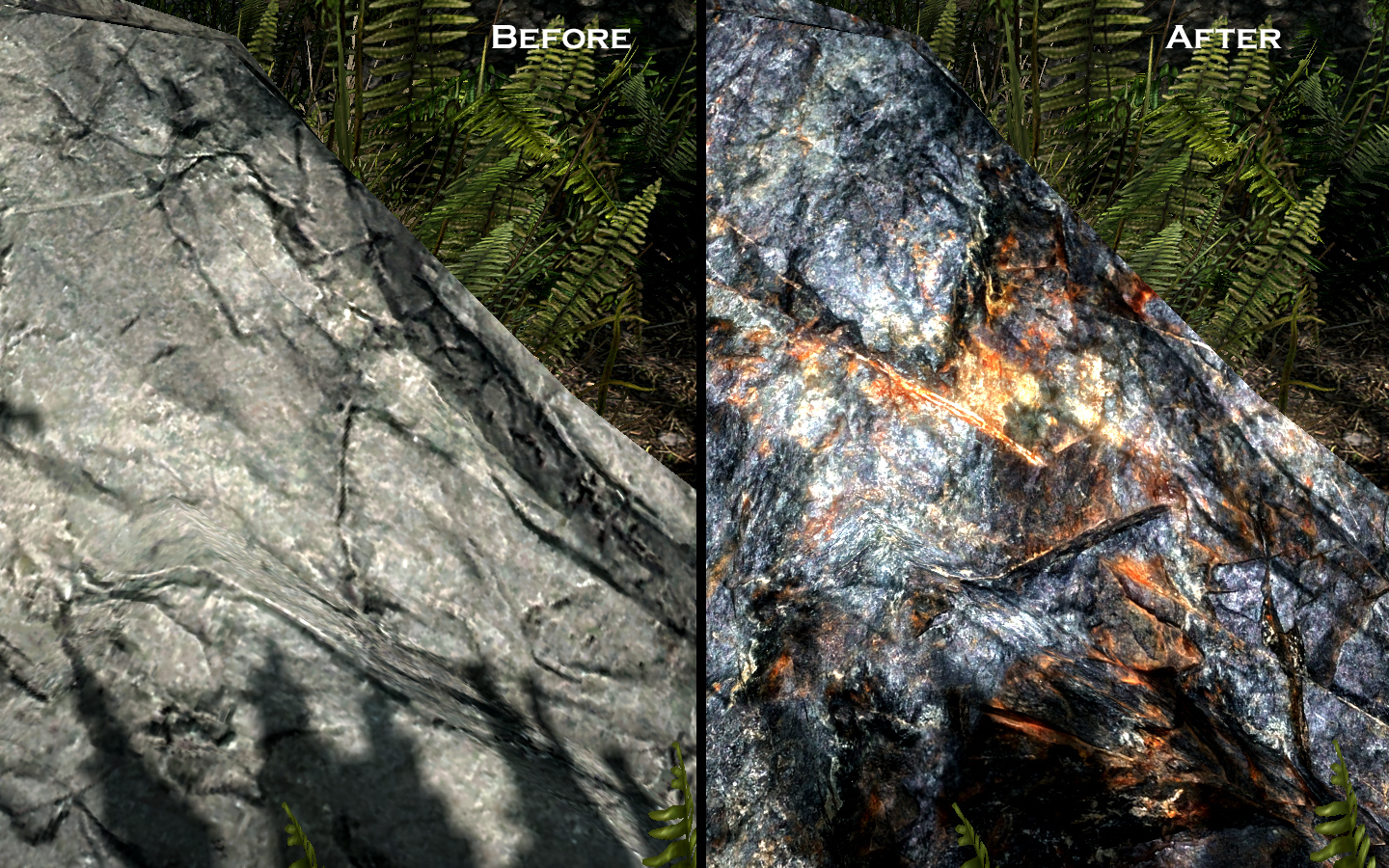 Обсидиан - живописно-пёстрая альтернативная замена текстур высокого разрешения на смену серостной унылой пластмассе гор и скал ванили. В архиве вас ждут папки с разной степенью детализированности: 1K, 2K, 4K и даже 8K.