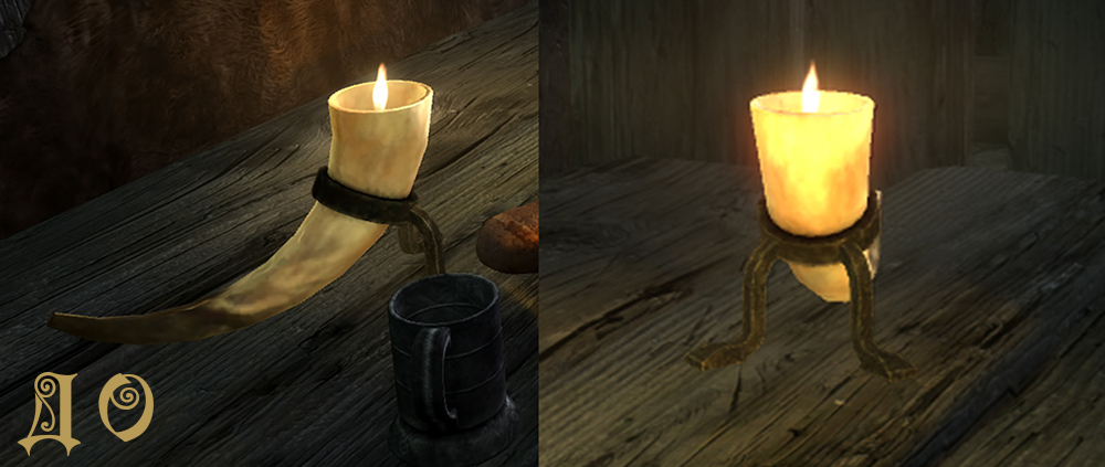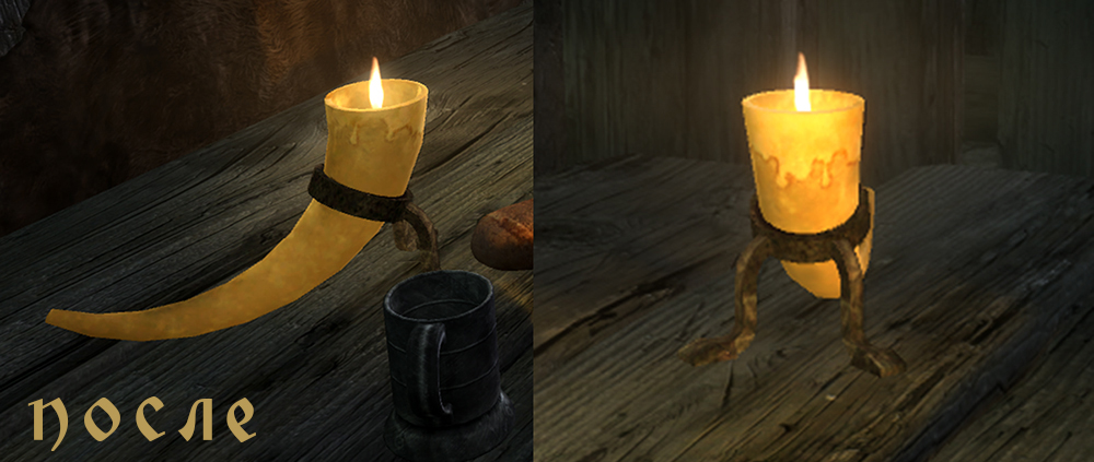 Данный мод заменяет в Скайриме текстуры рога со свечой внутри.