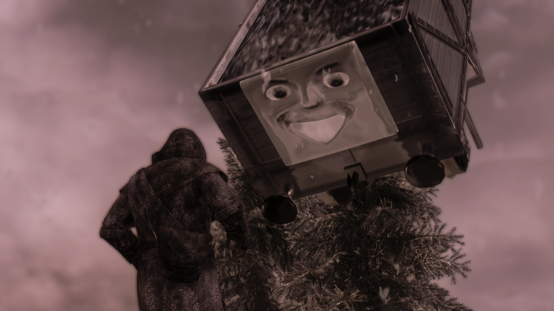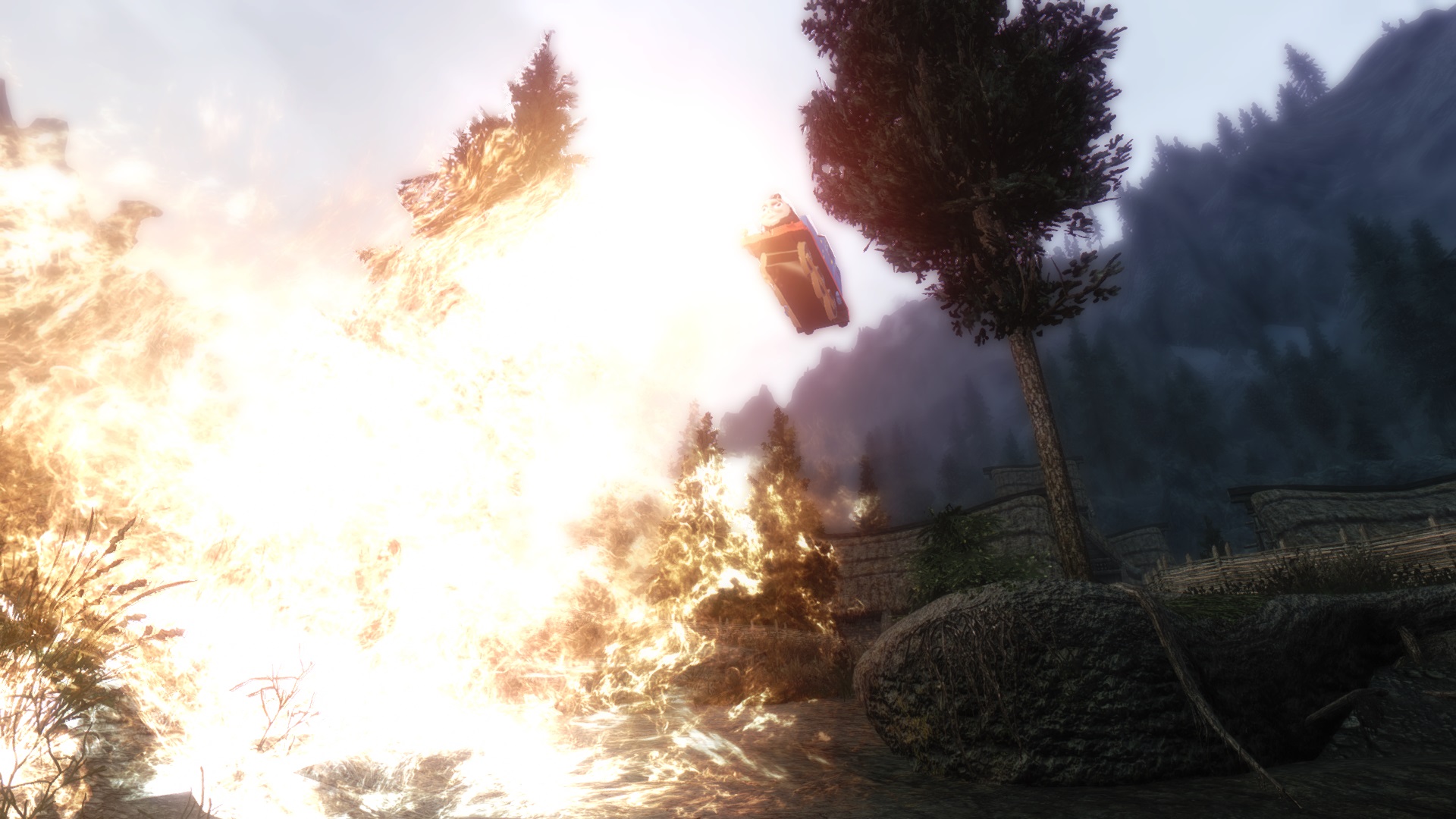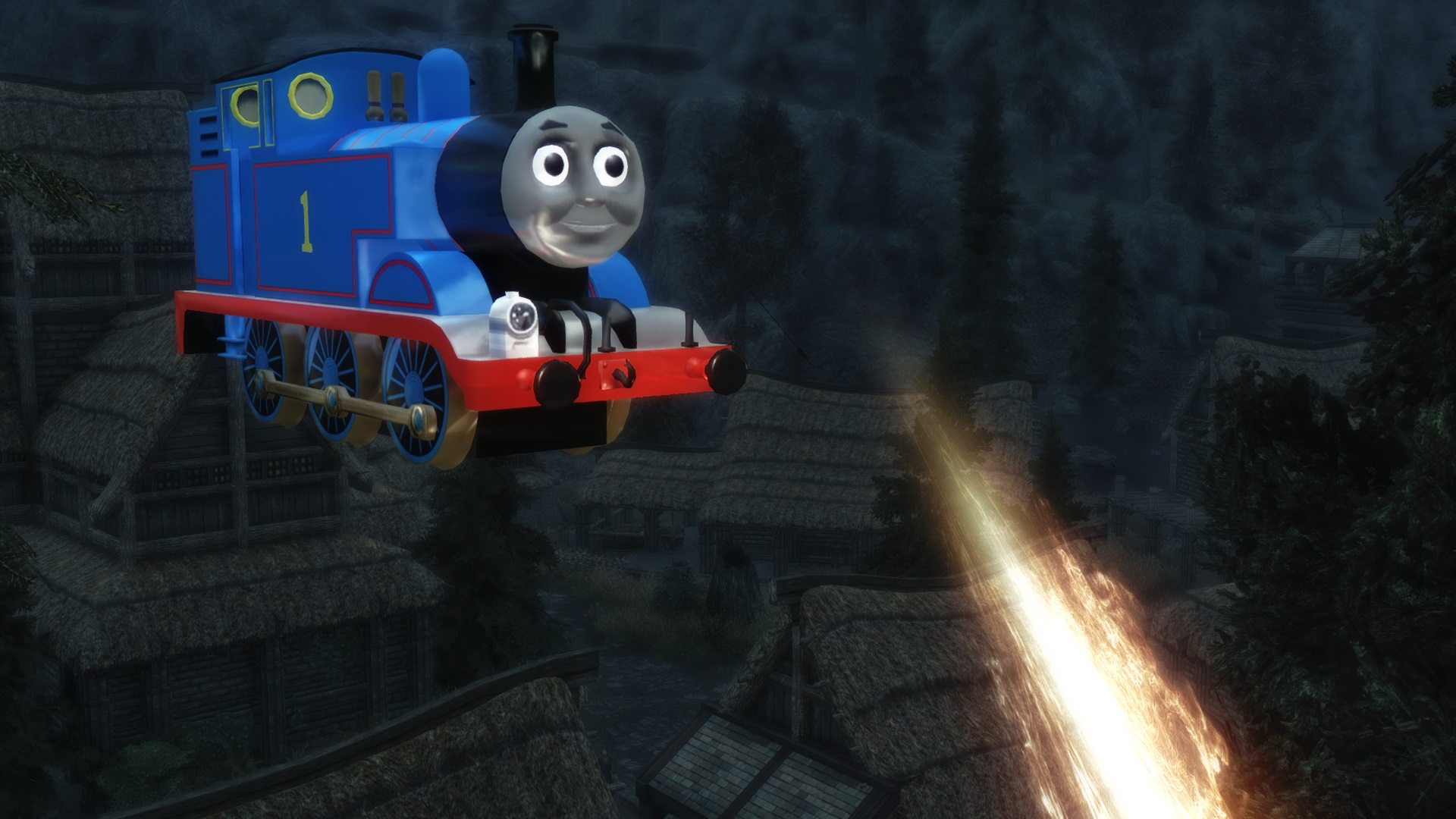 Очередной безумный мод от Trainwiz, в этот раз он заменил драконов на персонажей шоу "Thomas the Tank Engine", также заменены звуки и некоторые драконьи заклинания.