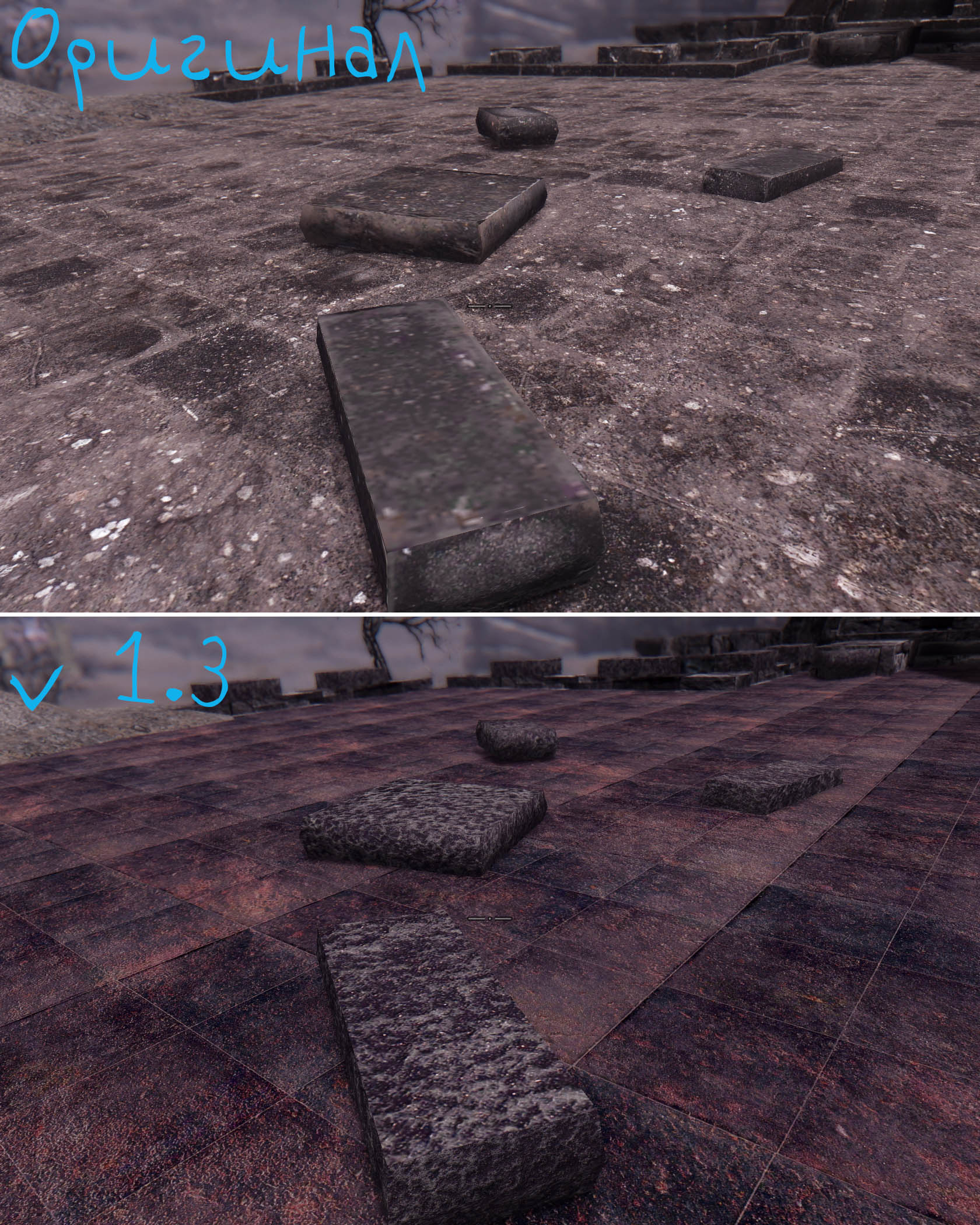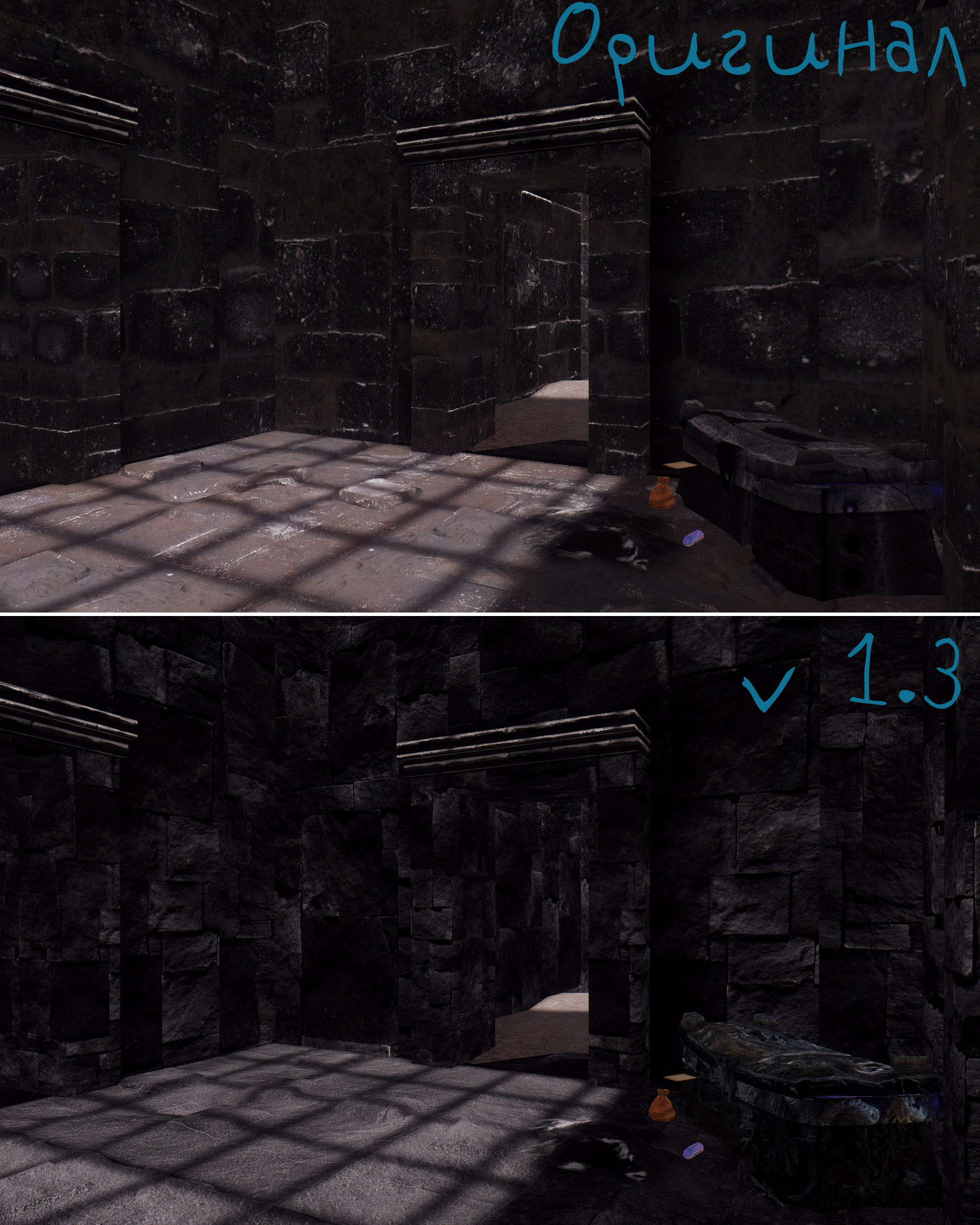 Исправил множество косяков с параллаксом, снизил яркость большинства текстур.