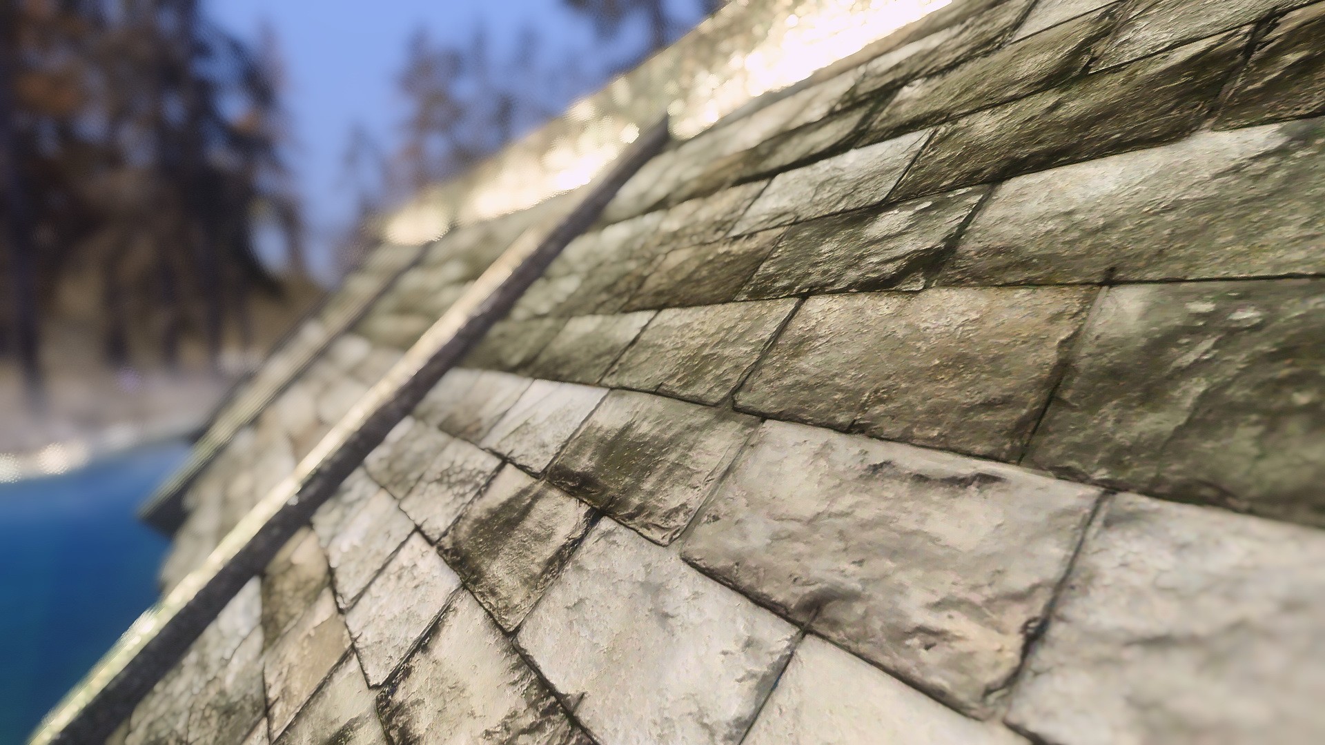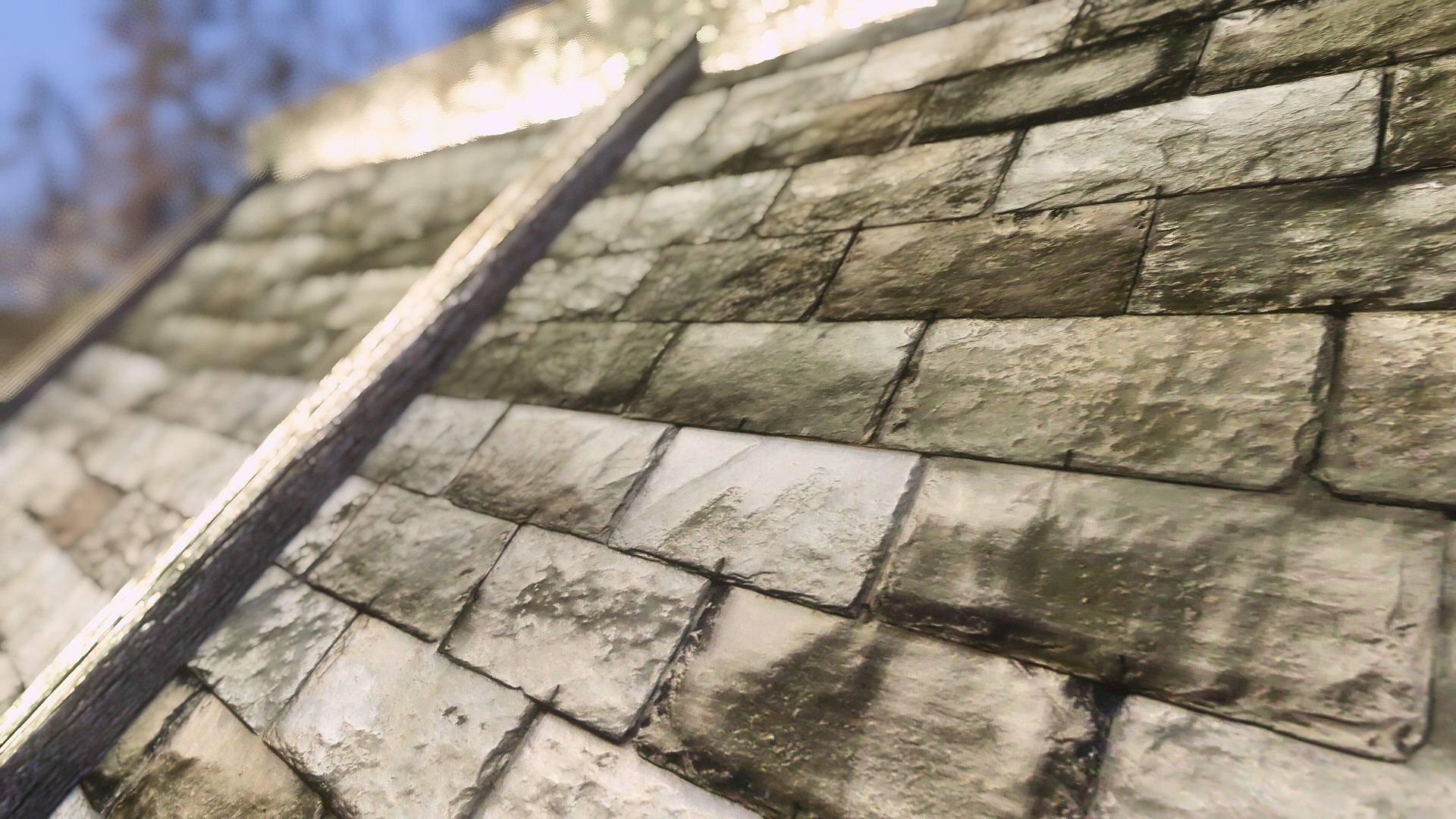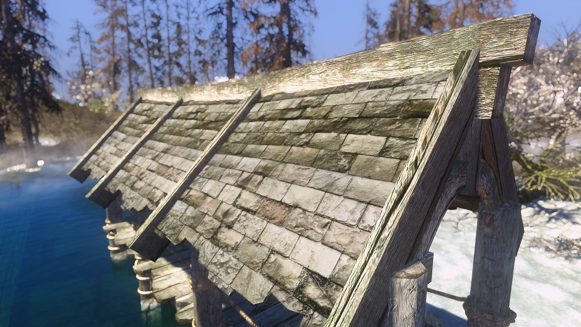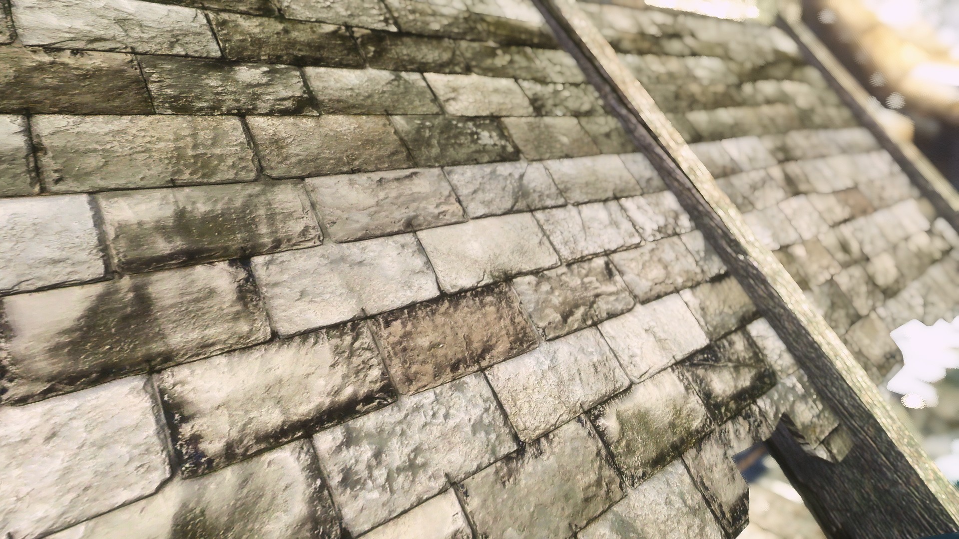 Крыши не очень. Во-первых кирпичи. Во-вторых, даже если представить что это такие прямогольные листы металла, то такая кровля больше подойдет для Виндхельма, а не для фермерских построек.