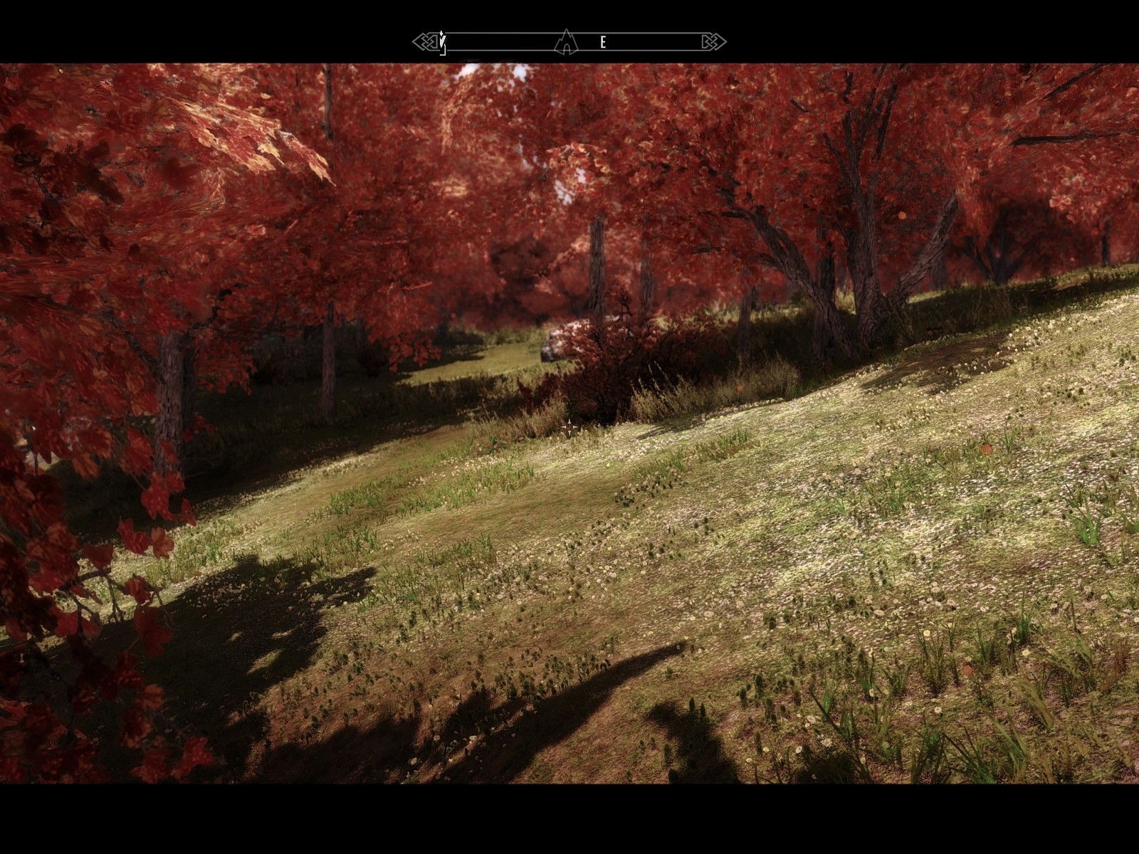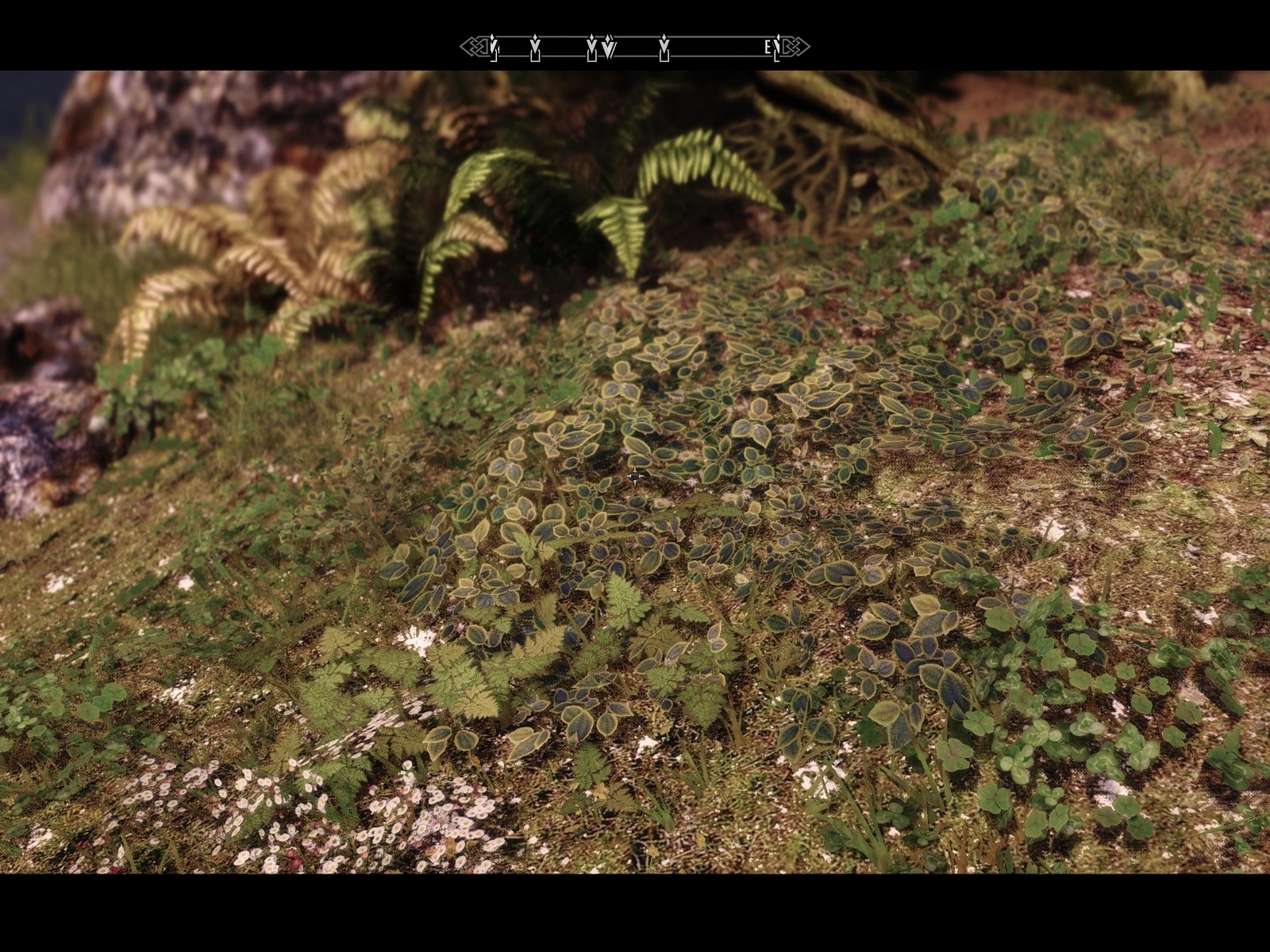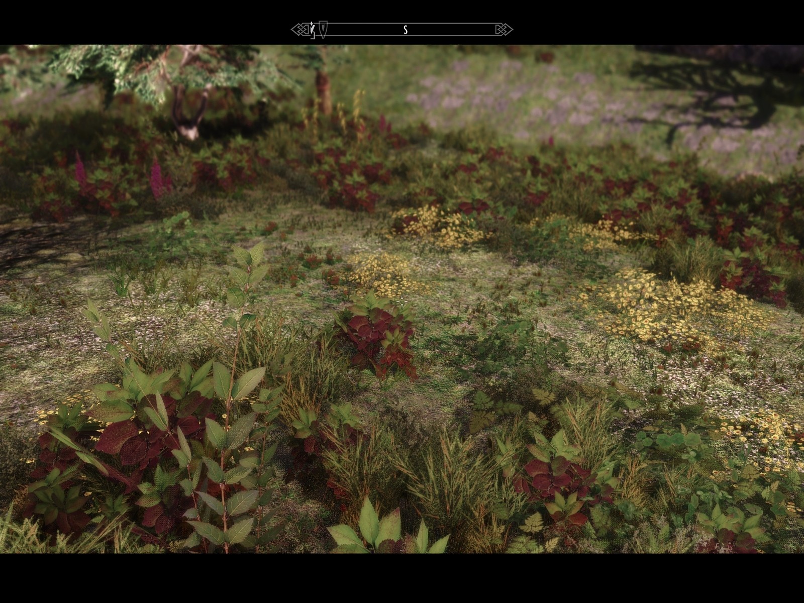 Очень красивый ретекстур флоры Скайрима, который создаст контраст между различными областями: леса станут зеленее, вайтранская флора более бурой/багровой, предел станет красочнее, а рифтенская область станет более осенней. Заснеженные и болотистые области не были затронуты.
