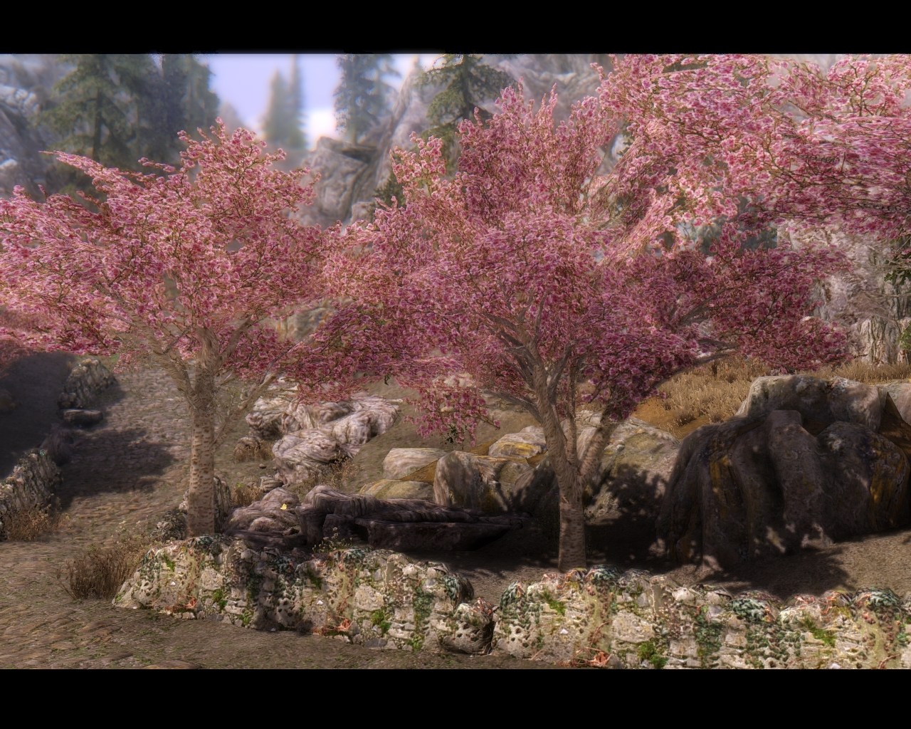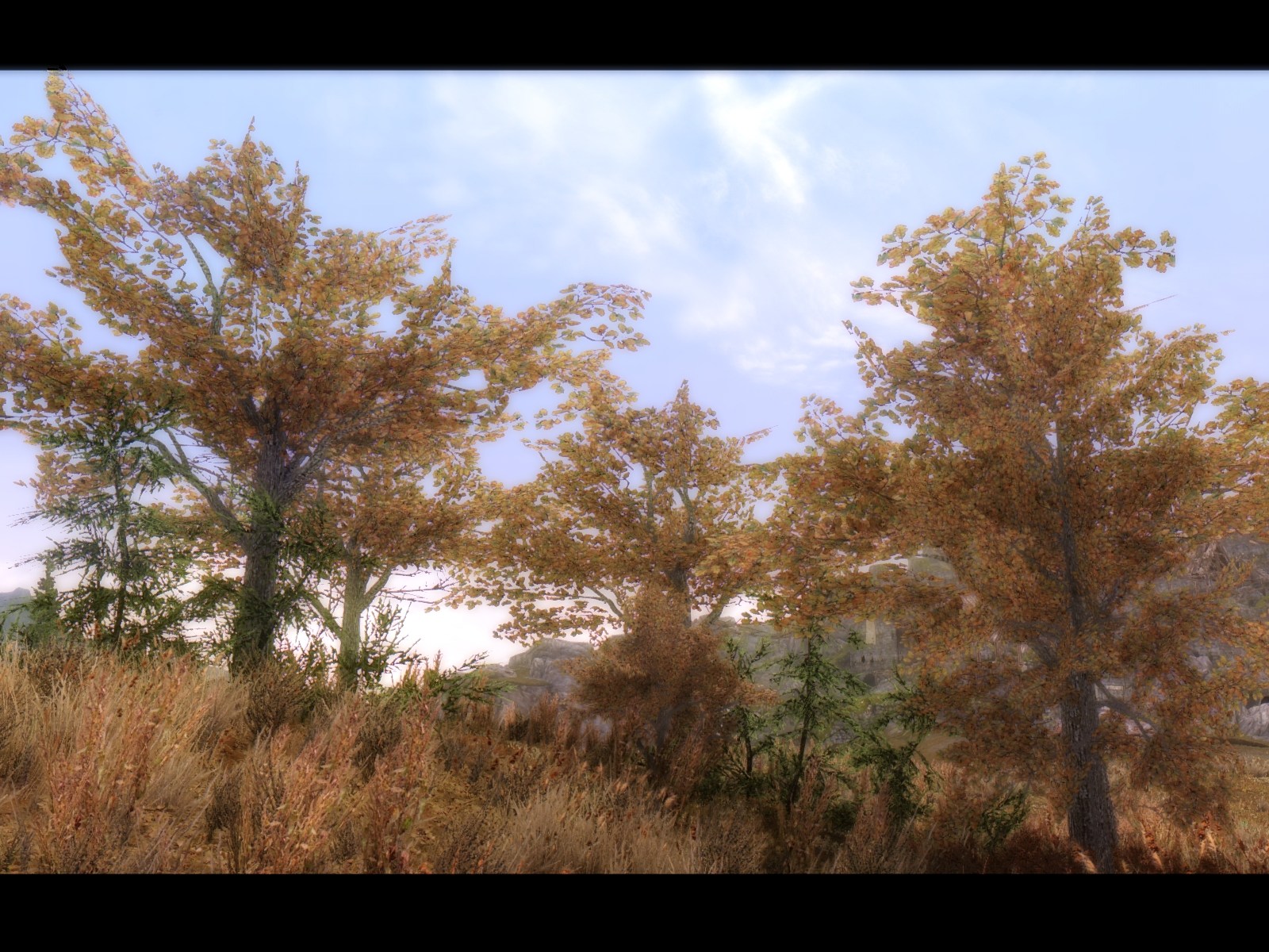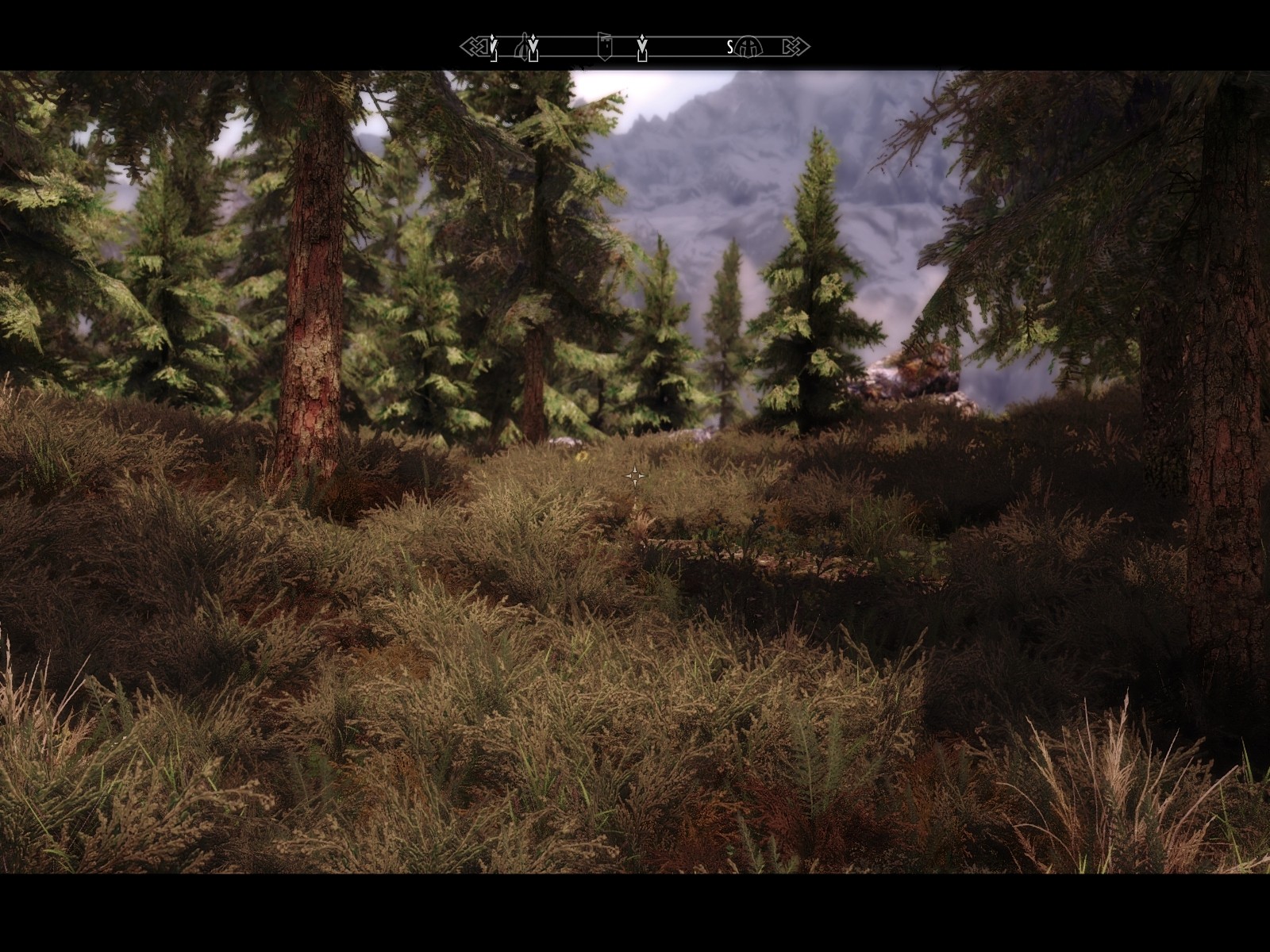 Очень красивый ретекстур флоры Скайрима, который создаст контраст между различными областями: леса станут зеленее, вайтранская флора более бурой/багровой, предел станет красочнее, а рифтенская область станет более осенней. Заснеженные и болотистые области не были затронуты.