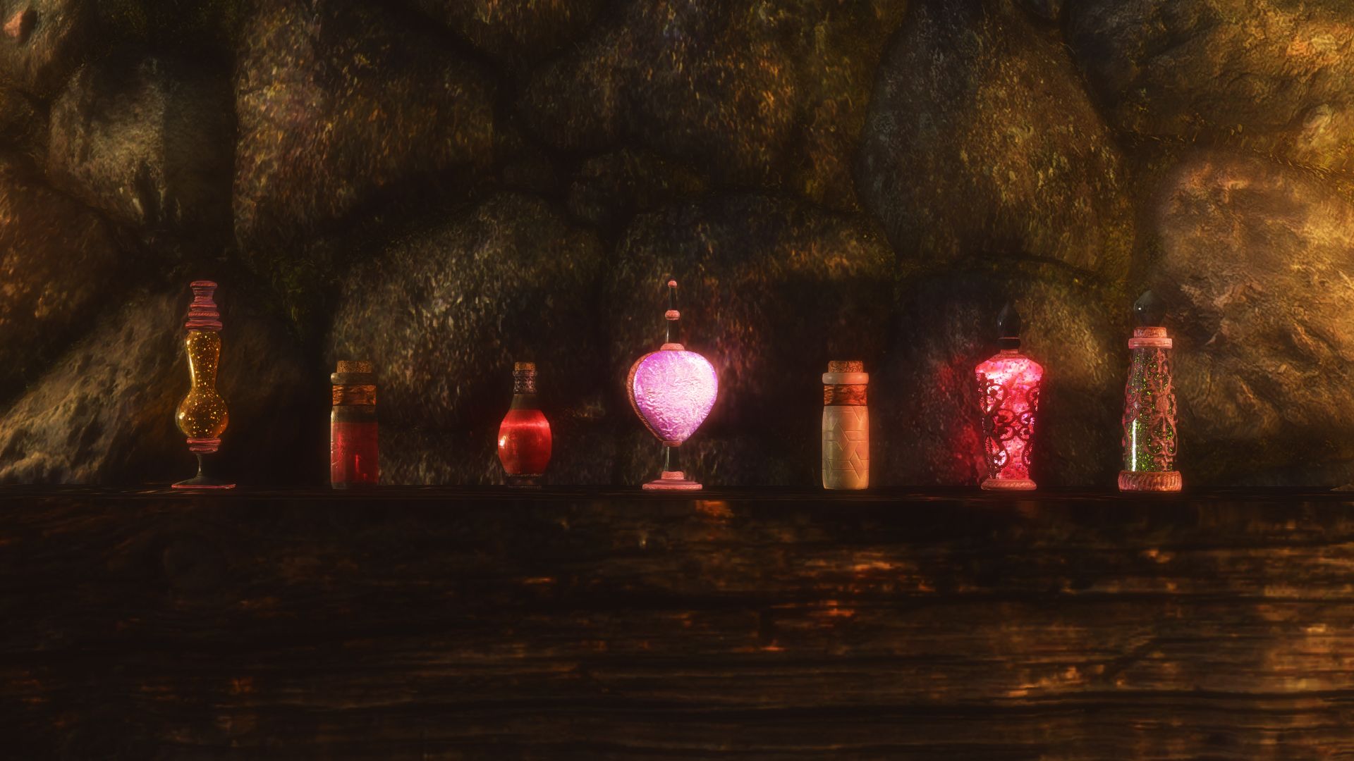 Прекрасный реплейсер зелий, который заменяет модели и текстуры почти всех оригинальных зелий Скайрима. Модели взяты из великолепных модов "Alluring Potion Bottles v3 by jbvw" для Oblivion и "AOF's Potion Replacer" для Morrowind. Многие из зелий станут анимированными.