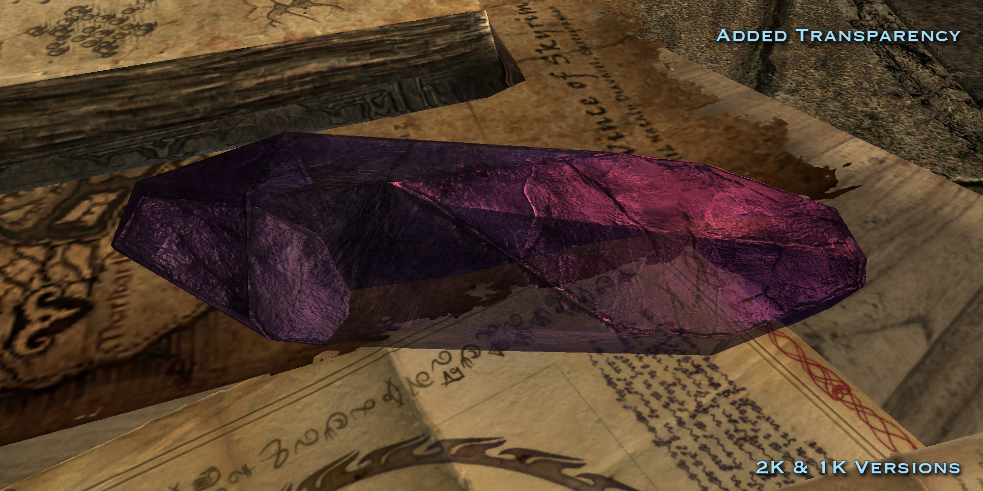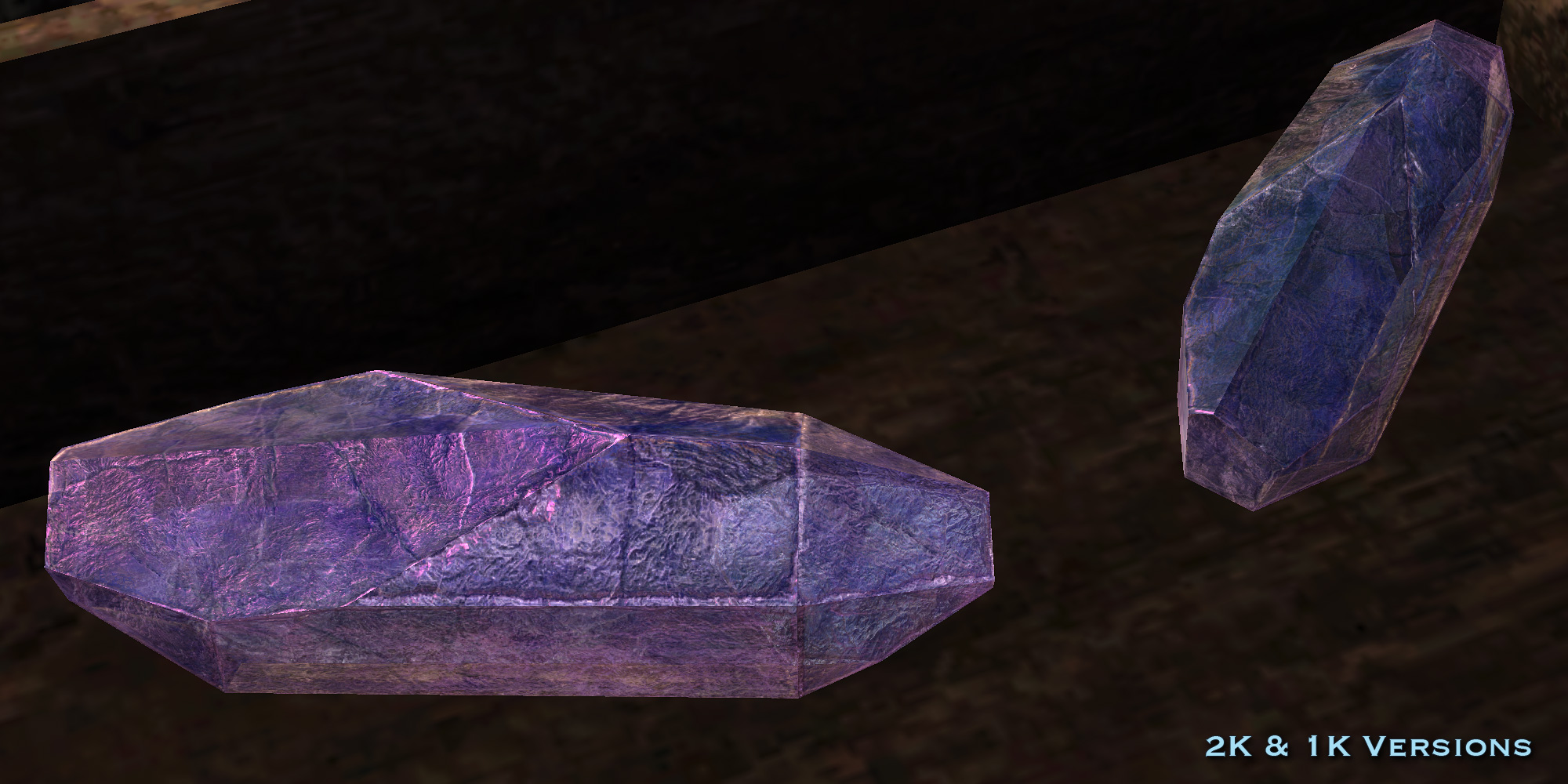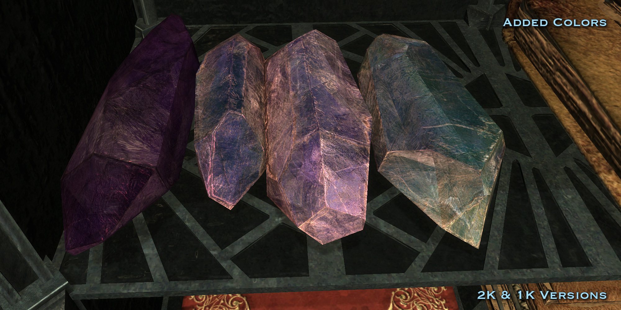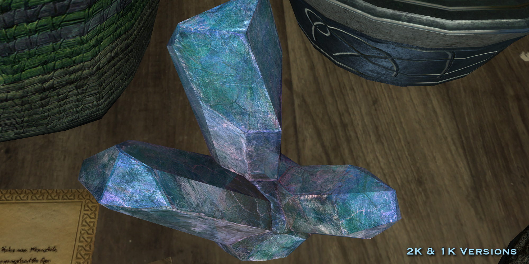 Сам ретекстур предложен в двух разрешениях, а именно 1024 и 2048, для каждого из вариантов мода. Выбирайте разрешение исходя из мощности Вашей машины. Хотя, камни занимают не так много места в мире Skyrim, попадаются не на каждом углу, и их прорисовка не занимает много времени из-за их габаритов. Если пользуетесь HighResTexturesPack и не испытываете проседаний FPS и фризов - смело ставьте 2048.