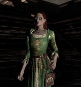 Теперь благодаря этому замечательному ретекстуру она носит красивое зеленое платье расшитое золотом, которое смотрится гораздо краше ярловских !!! (особенно с обручем с изумрудом).Текстурки я поджал до 2к - платье было 10 а стало 5,5 мб. Кстати в HD паке текстур это платье тоже весит 5,5 мб.