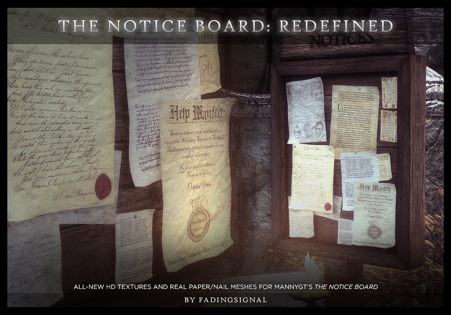 Потрясающие новые высококачественные текстуры и 3D модели листовок и гвоздей на досках объявлений из мода The Notice Board. Текстуры доступны в разрешении 4096 и 2048.