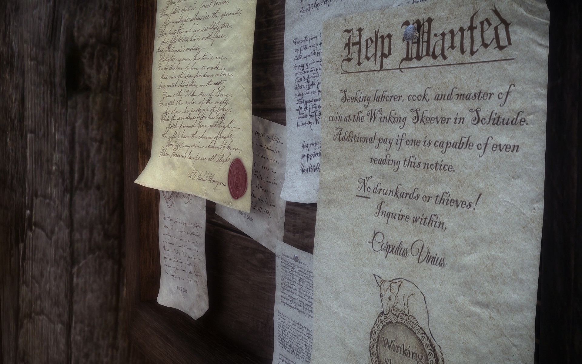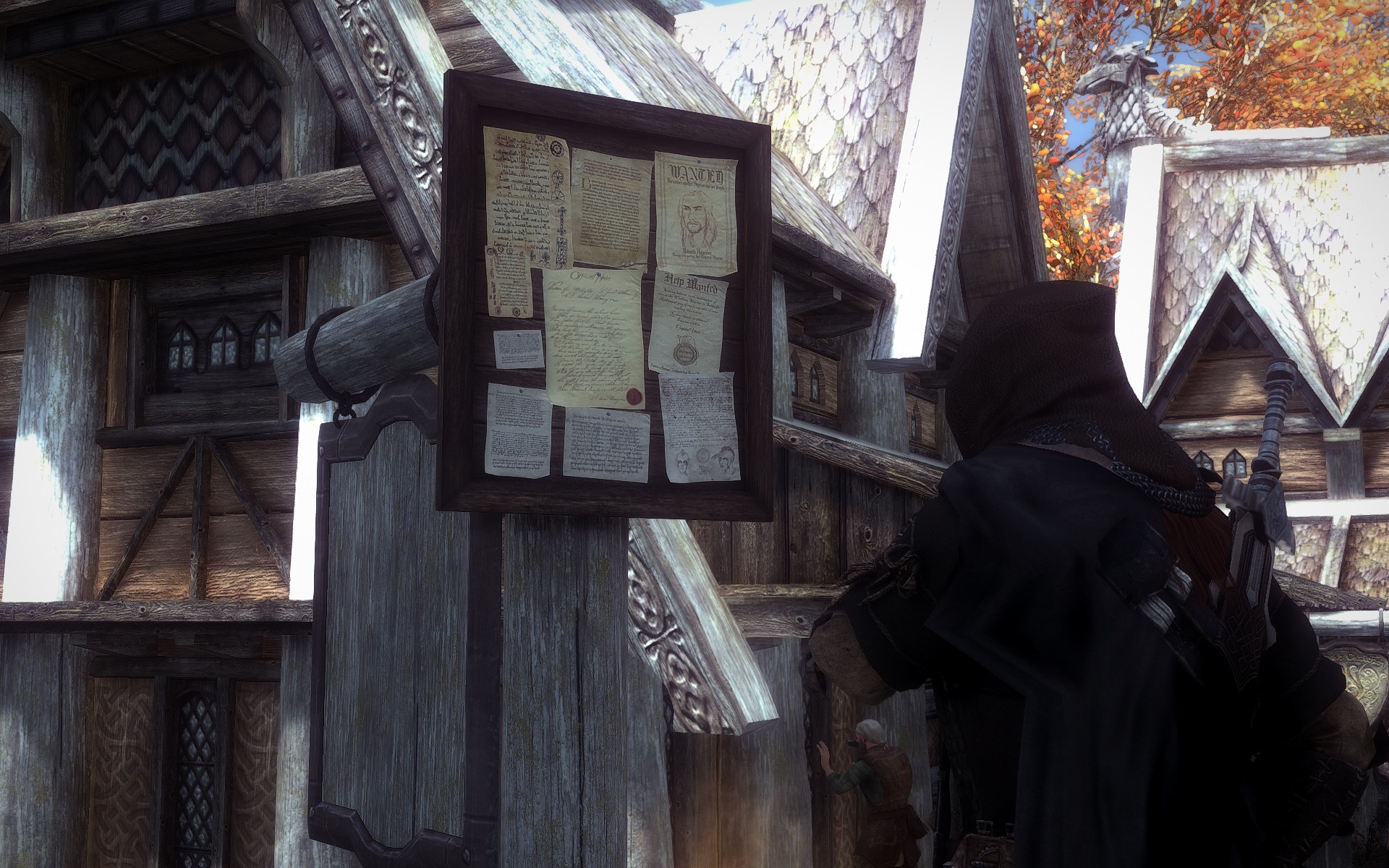доски установлены у дверей в таверны, слева с заданиями, справа со всякими лорными обьявлениями и записями для атмосферы сугубо. Думаю, если и вешать где обьявления- так это у таверны