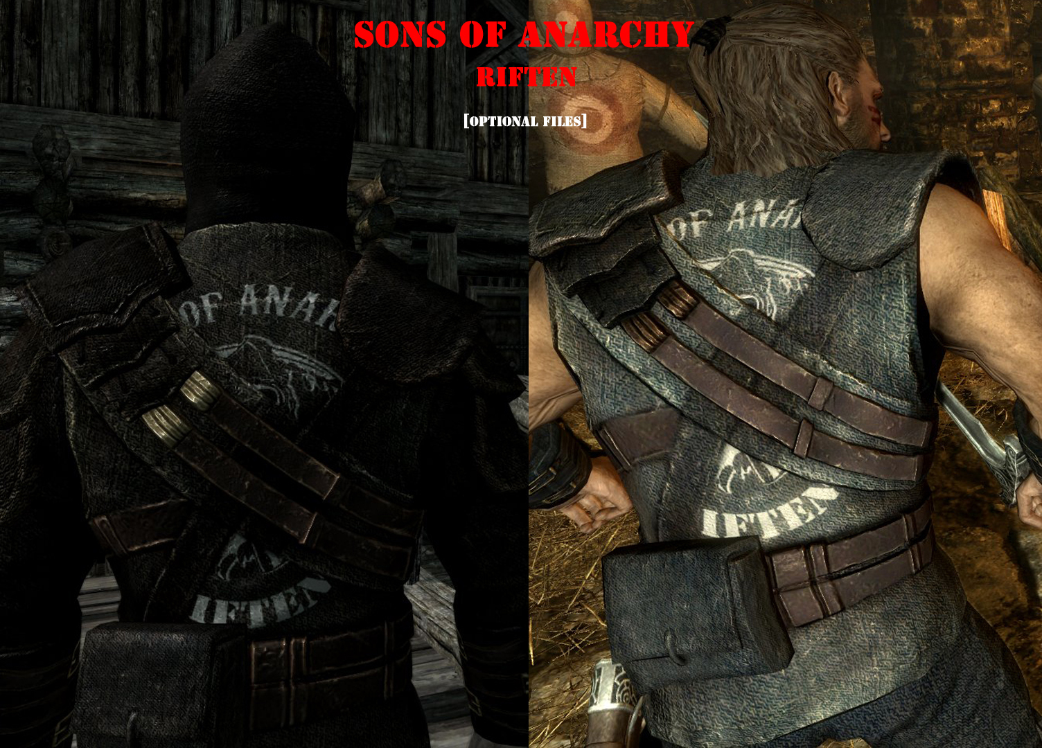 Ретекстур всей брони Гильдии воров в тканево-джинсовом исполнении. Опционально можно добавить логотип "Sons of Anarchy" (отсылка к американскому телевизионному сериалу в жанре криминальной драмы).
