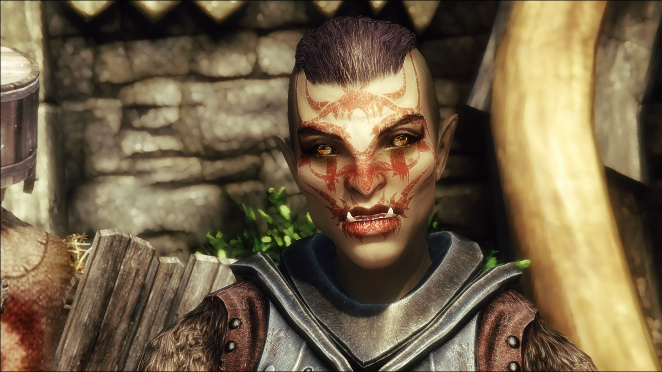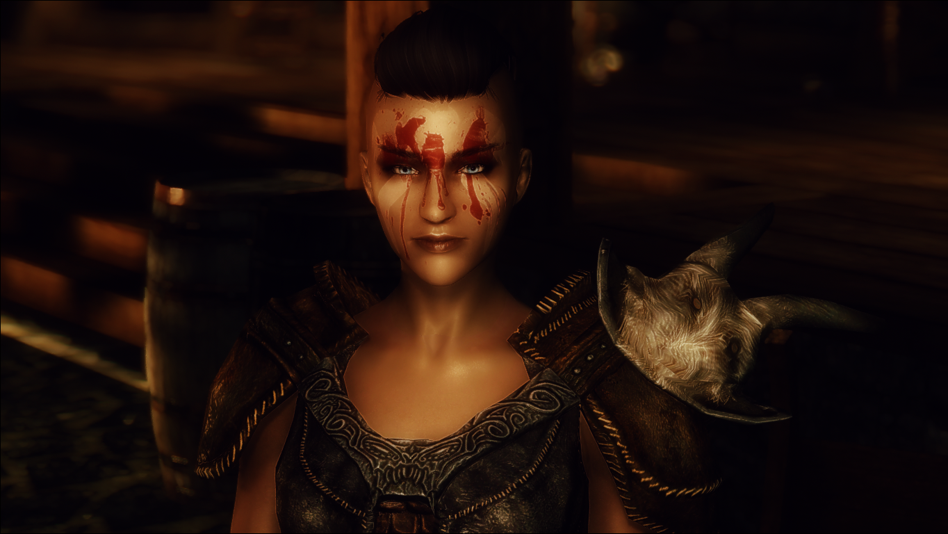 Так как в моде используются тинтмаски (боевые раскраски и макияж) высокого разрешения, для их правильного отображения требуется SKSE. Проверьте, есть ли в вашей папке Skyrim/Data/SKSE файл SKSE.ini, а в нём строка: