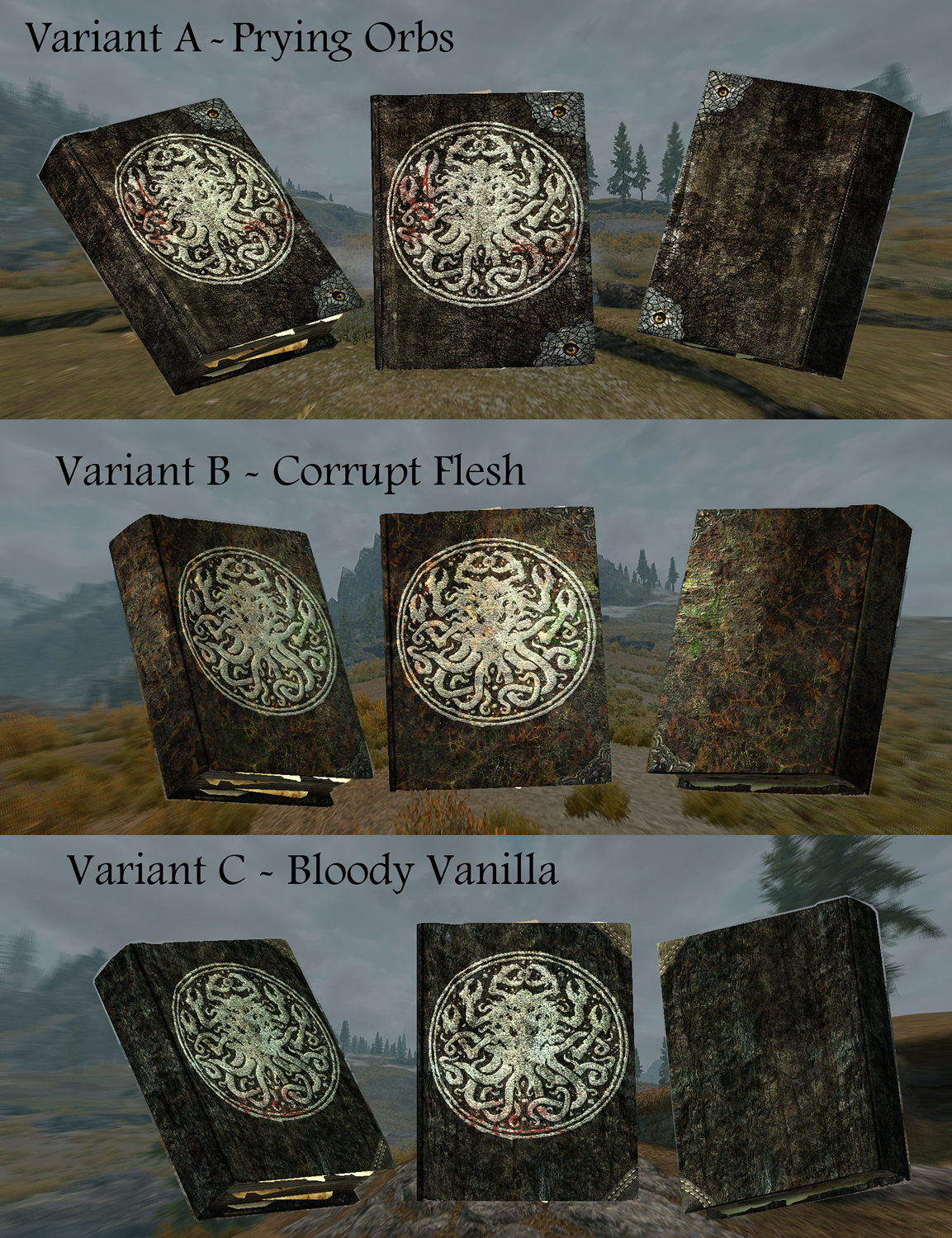 4. если вам нужны альтернативные текстуры Чёрных книг - выбирайте между вариантами (Corrupt Flesh, Prying Orbs и Bloody Vanilla) и качеством (1к или 2к). Папки с альтернативными текстурами начинаются с "01-BlackBook..."