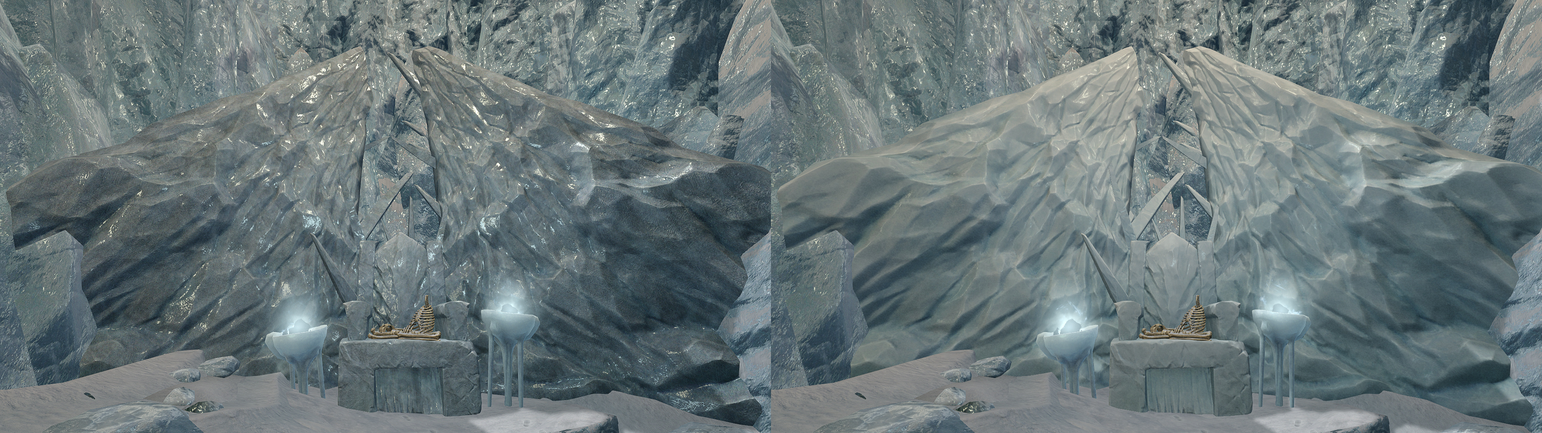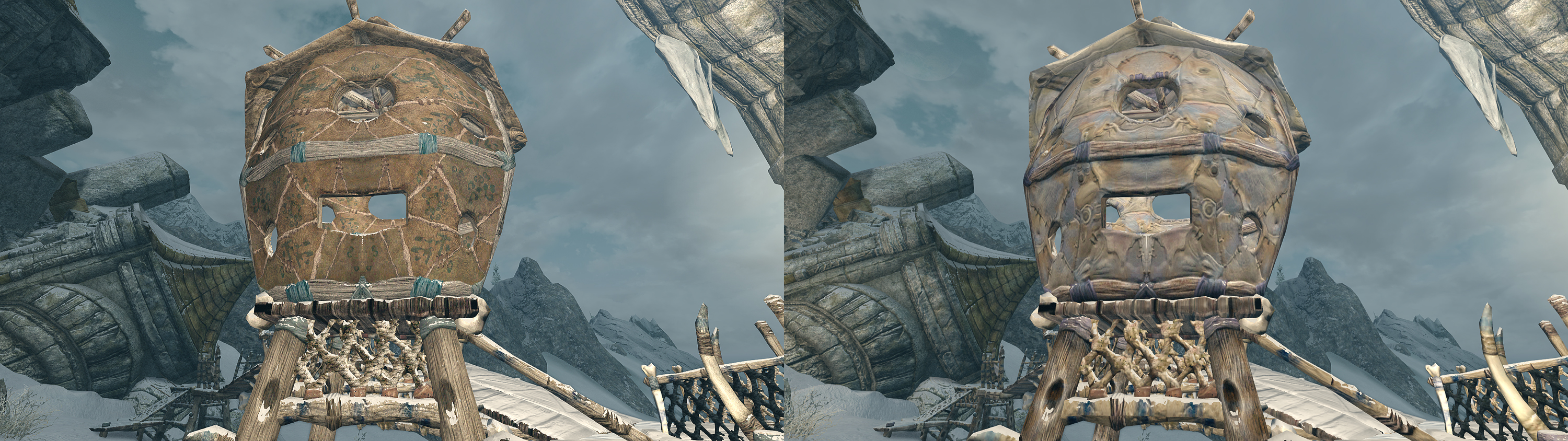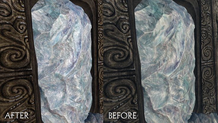 Этот "мод" заменяет текстуры архитектуры риклингов, ледяного трона в замке Карстрааг, черепа Карстраага, месторождений сталгрима и сердечного камня. Текстуры основаны на официальном "дополнении", High Resolution Texture Pack, однако большинство пришлось переделывать с нуля, используя оригиналы в качестве основы.