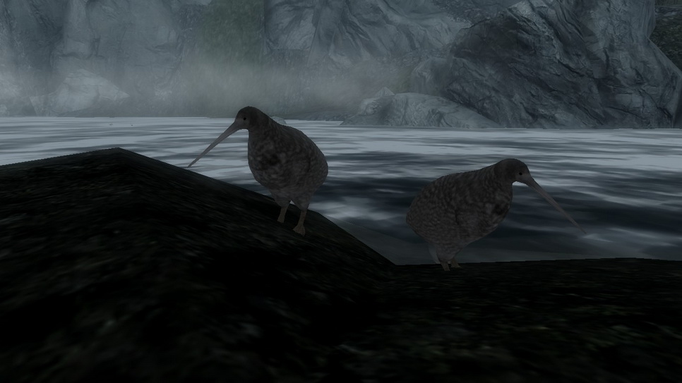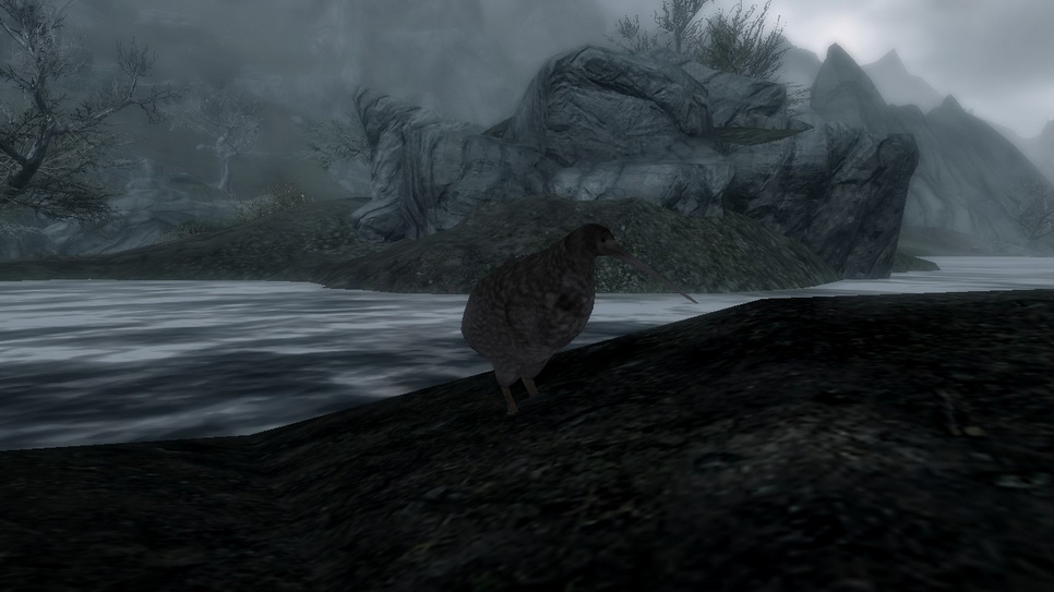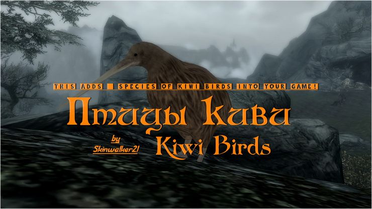 * Мод добавляет в Скайрим 5 видов птиц киви, большинство из них можно найти в Пределе или в области рядом с ним.