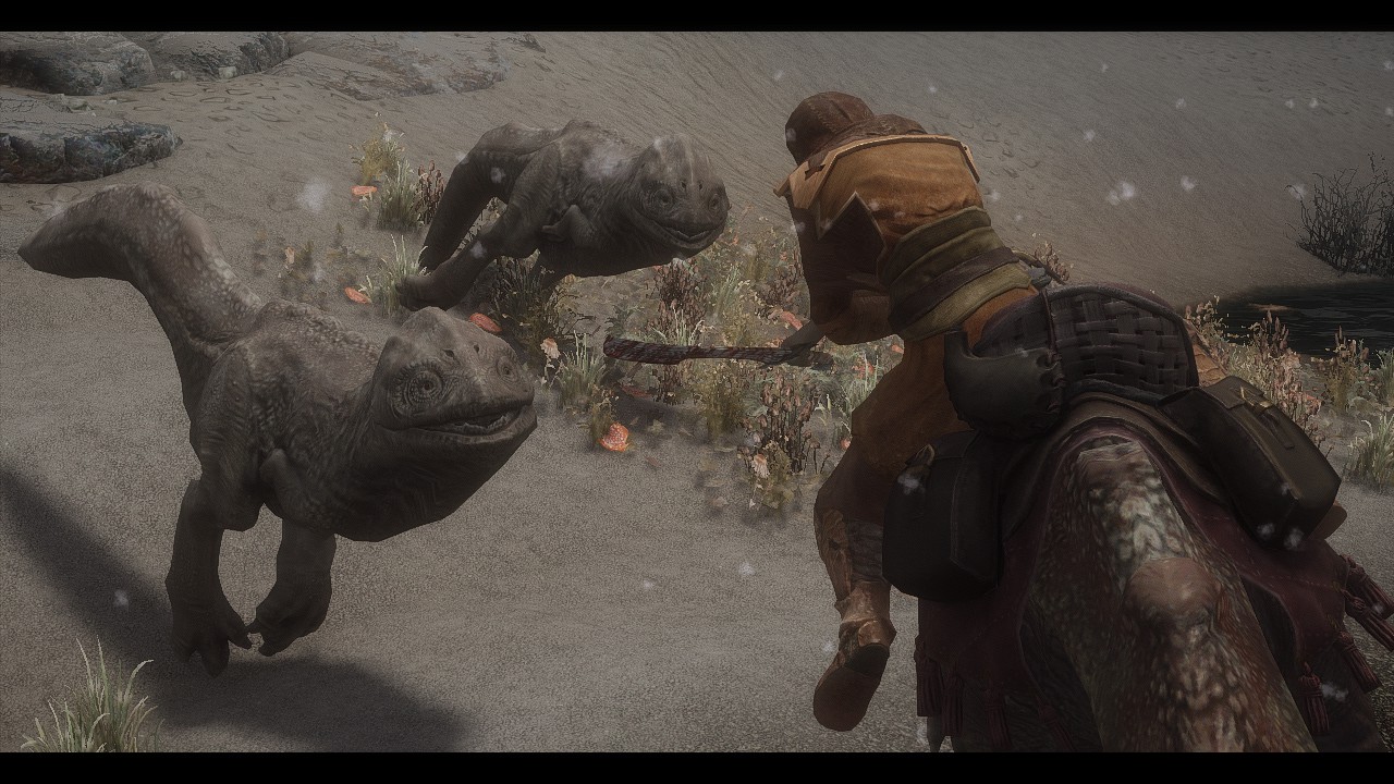 Добавляет в игру ездового гуара и диких гуаров. Найти осёдланного гуарчика вы сможете на улицах Вороньей Скалы. Диких повстречаете на Солстхейме и в Рифте.