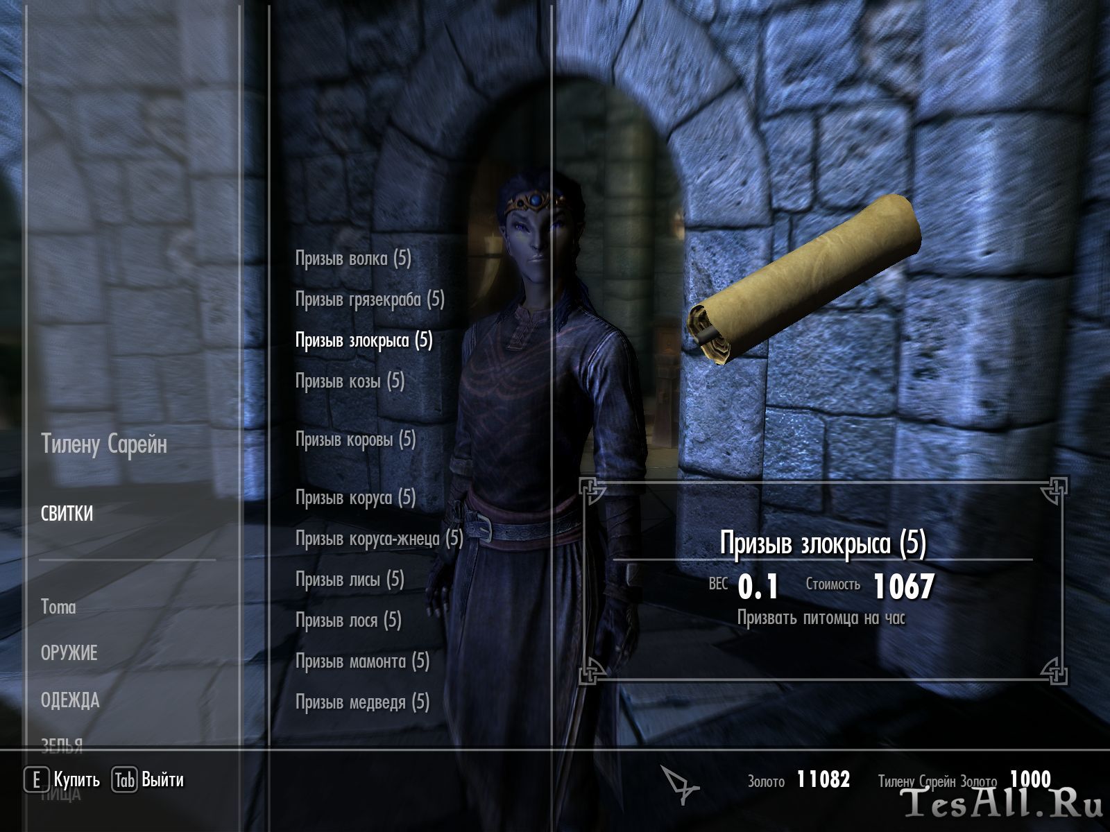 У новой торговки Тилену Сарейн в зале поддержки Коллегии (второй этаж, столовая) вы можете купить свитки, призывающие питомца на час.