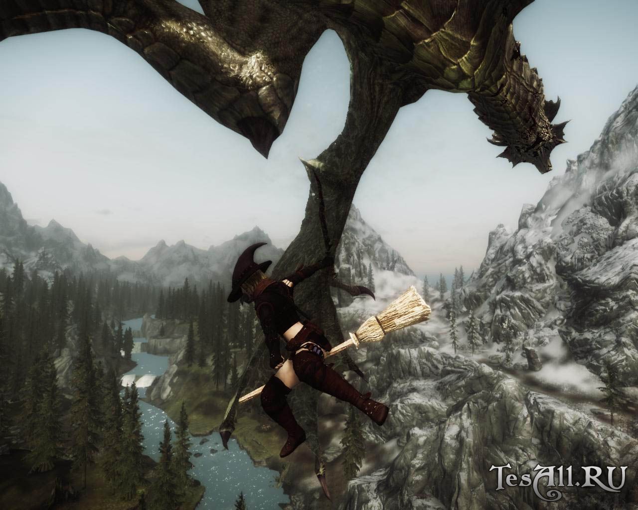 Мод добавляет летающую метлу и заклинание левитации. С помощью них вы можете летать где хотите и как хотите. Метла может быть использована в качестве посоха.