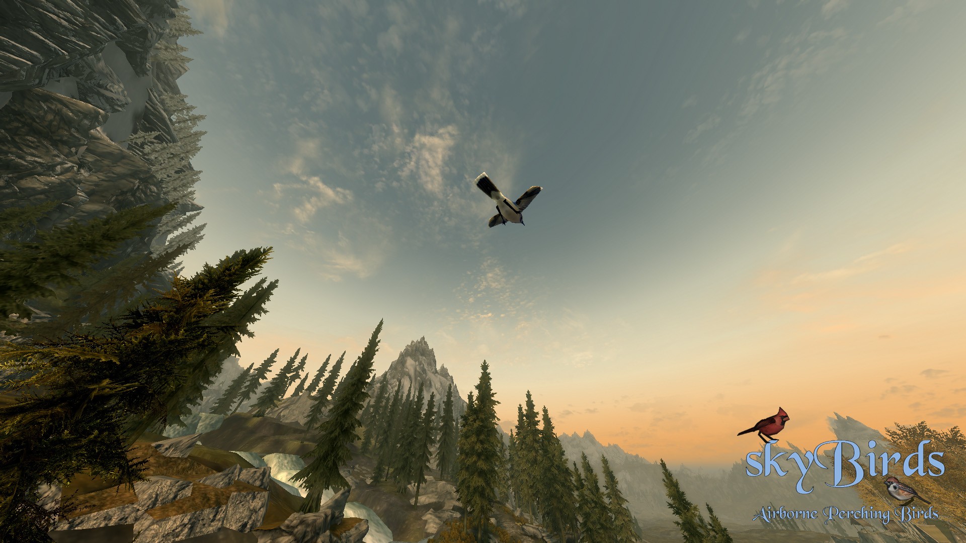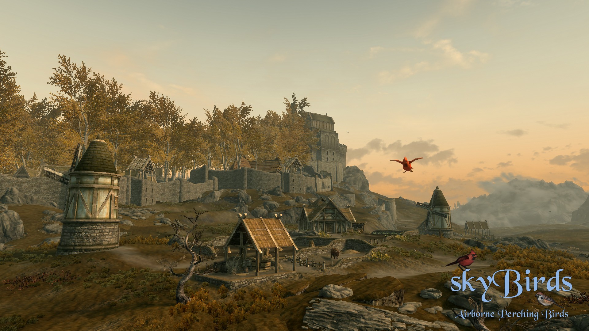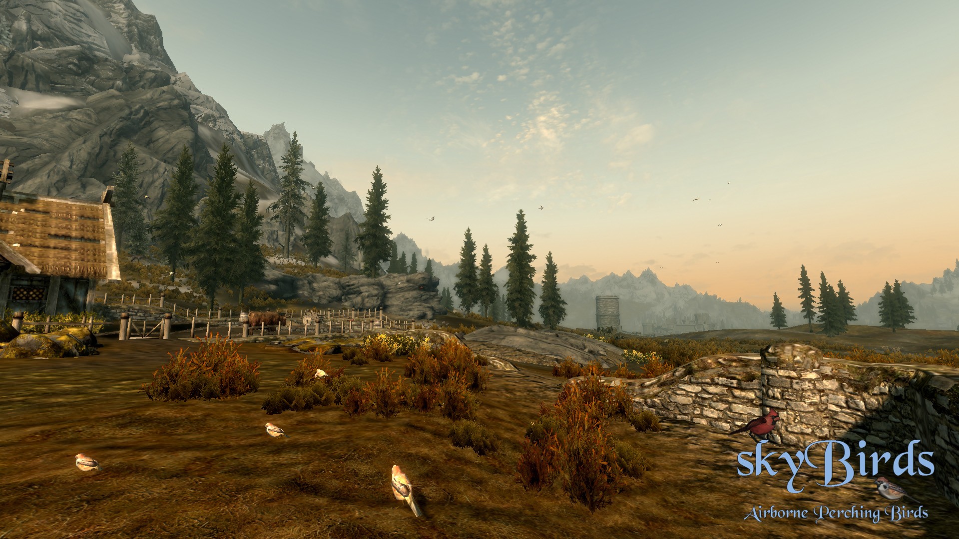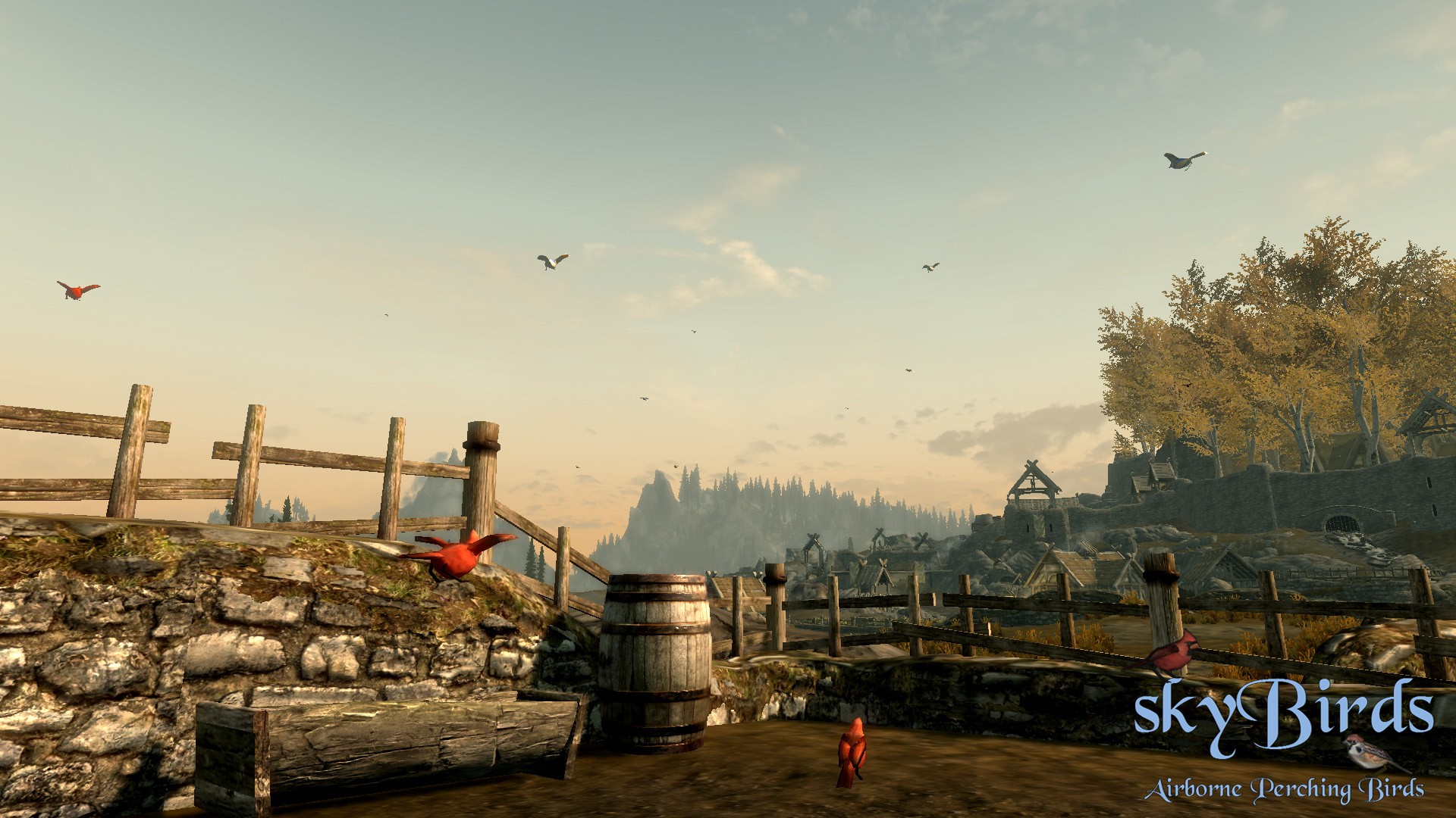 - Внедрение звука для "Birds of Skyrim". Мод skyBirds добавляет звук всем птицам из мода "Birds of Skyrim", моды взаимодействуют друг с другом. Петухи будут кричат на закате и рассвете.