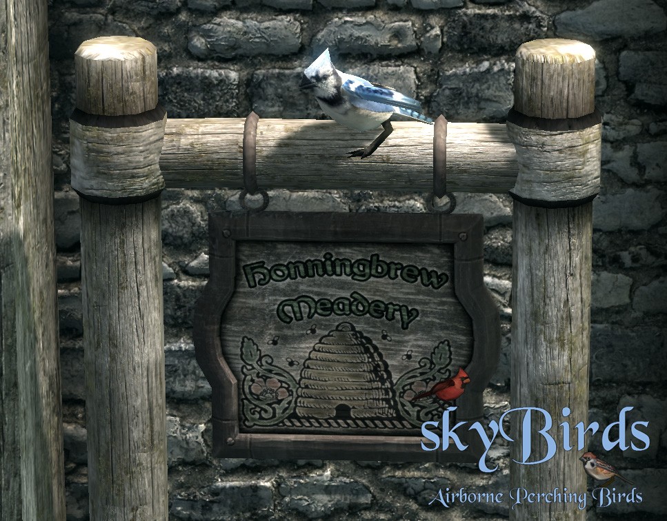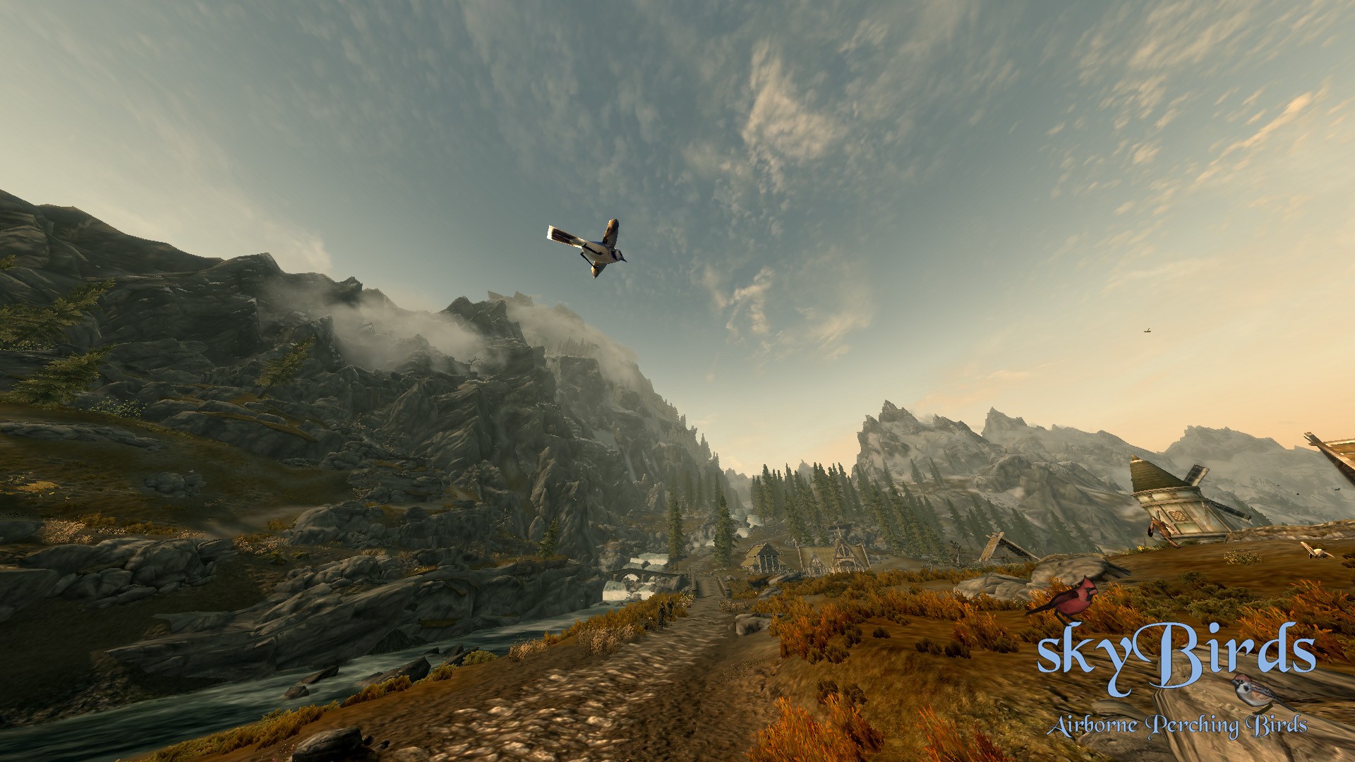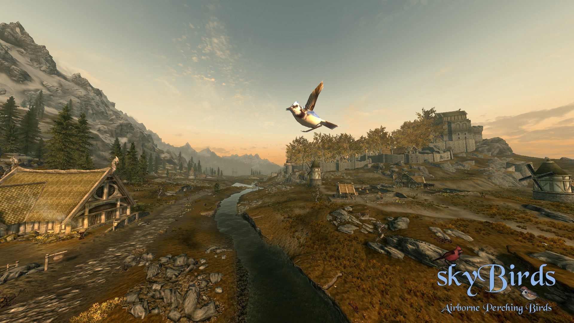 - При использовании ASIS ваша игра будет вылетать, пока вы не добавите "skyBirds - Airborne Perching Birds.esp" в раздел исключений ini. файла ASIS и перезапустите ASIS patcher.