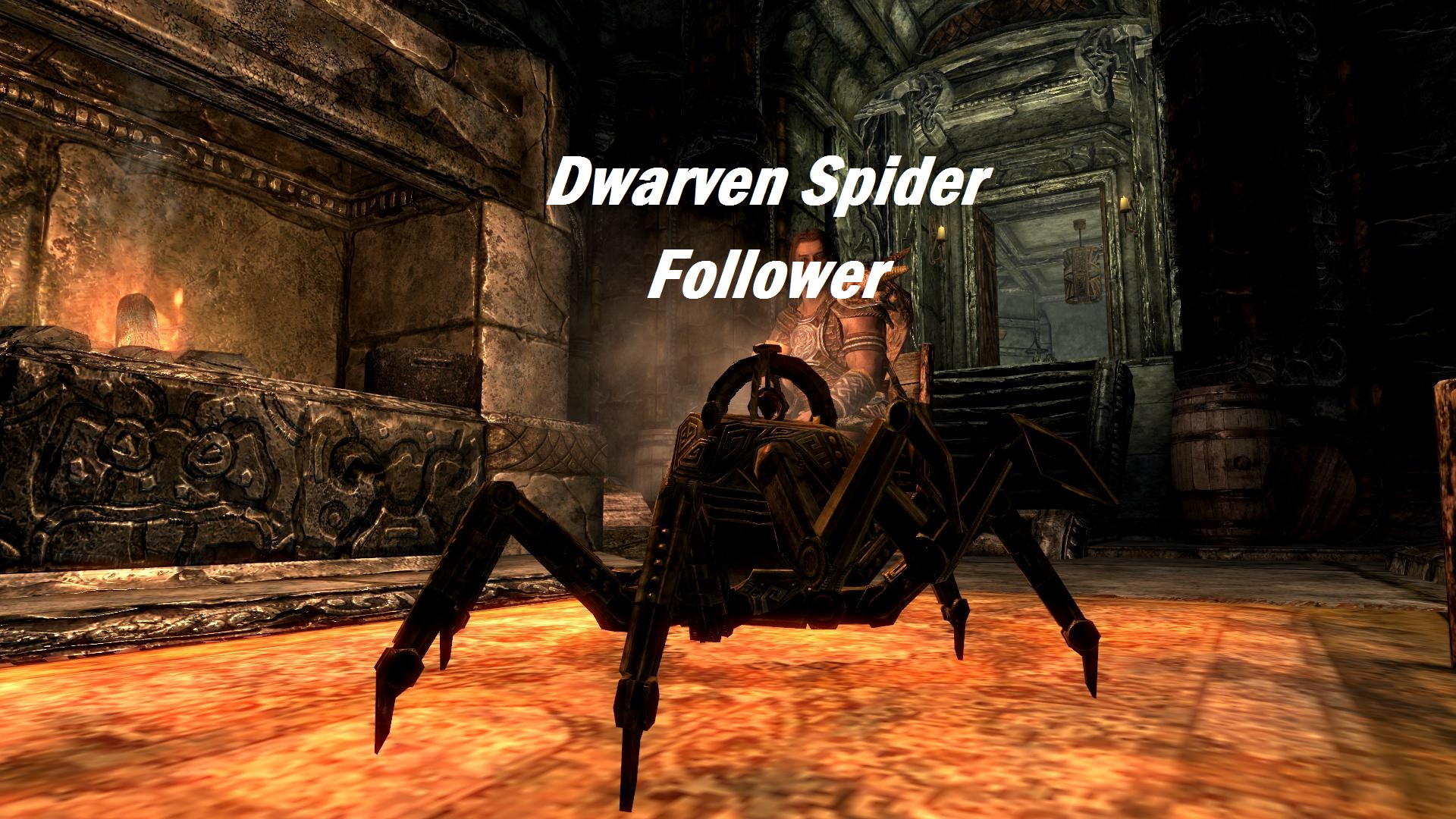 Двемерский паук озвучен, имеет свою историю, очень быстрый (сделано для того, что бы он не отставал от вас) и сразу как вас увидит, посчитает вас его хозяином... Может таскать ваши вещи выполнять ваши поручения и приказы.