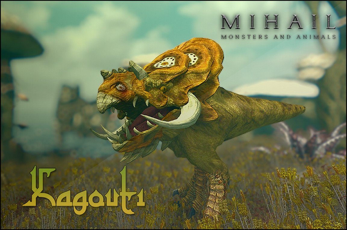 Кагути — это двуногие существа, которые имеют короткий хвост, бивни и костяной щиток, прикрывающий шею. Охотятся по одиночке или небольшими группами. Как правило самки намного крупнее и сильней самцов.