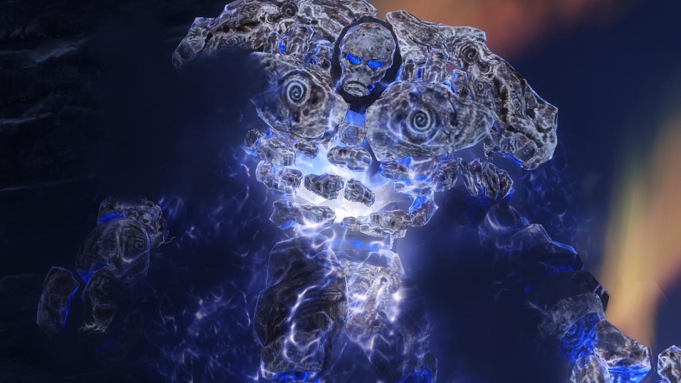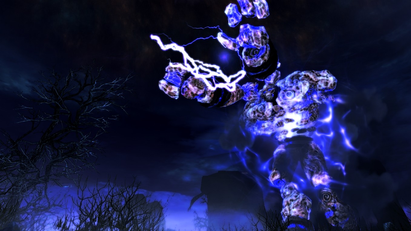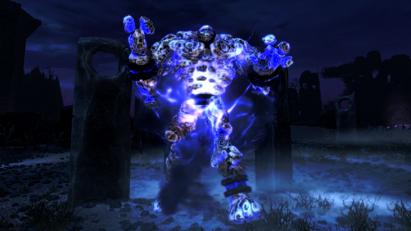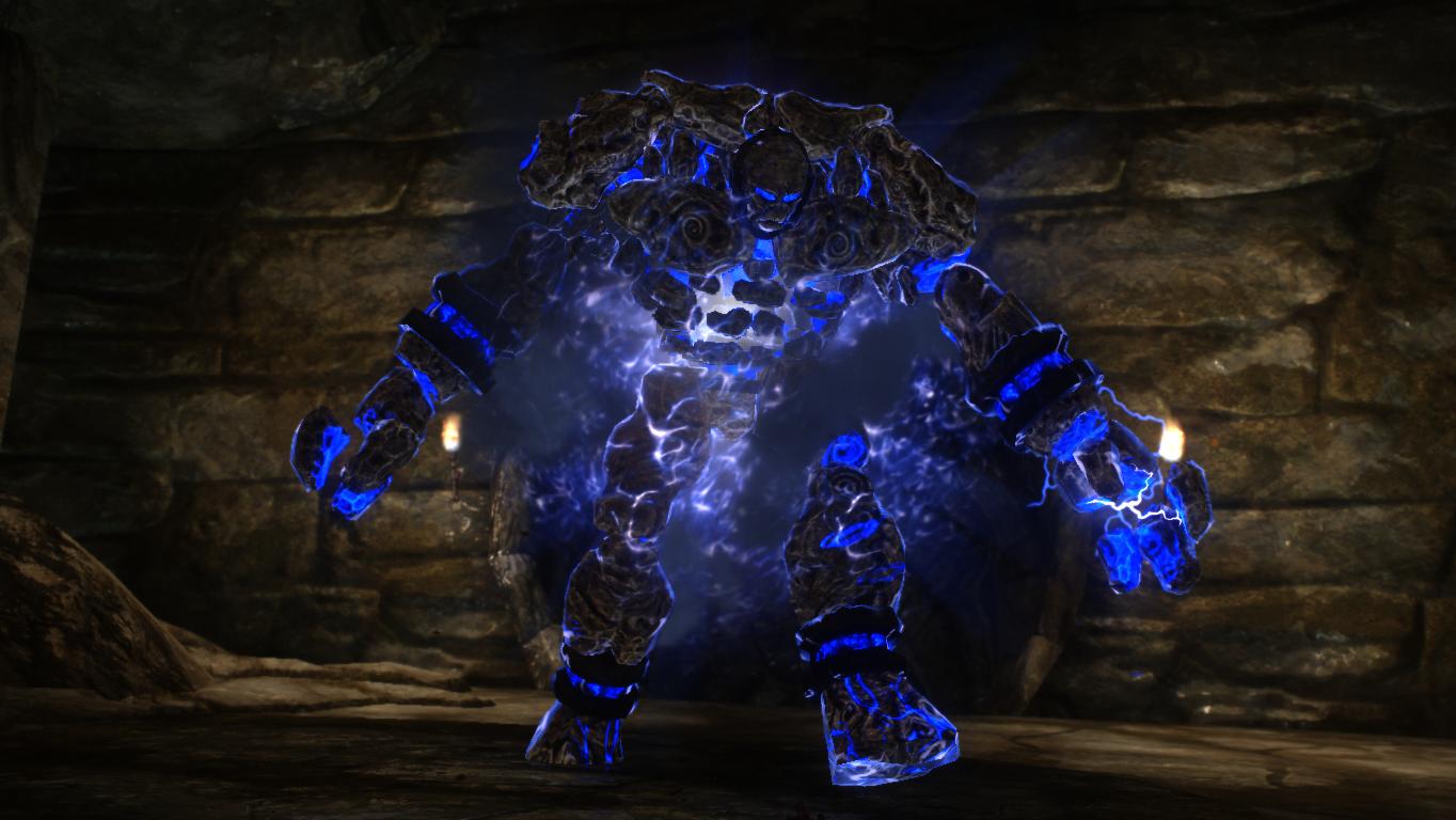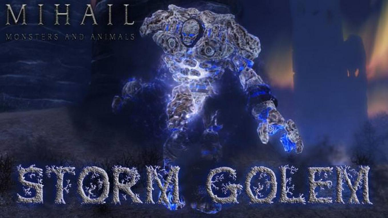 Грозовые големы - это элита среди стихийных даэдра. Имеют сопротивляемость к штормовой магии, ядам и могут отражать заклинания. И только сильные грозовые маги и драконы способны призывать этих мощных даэдра..
