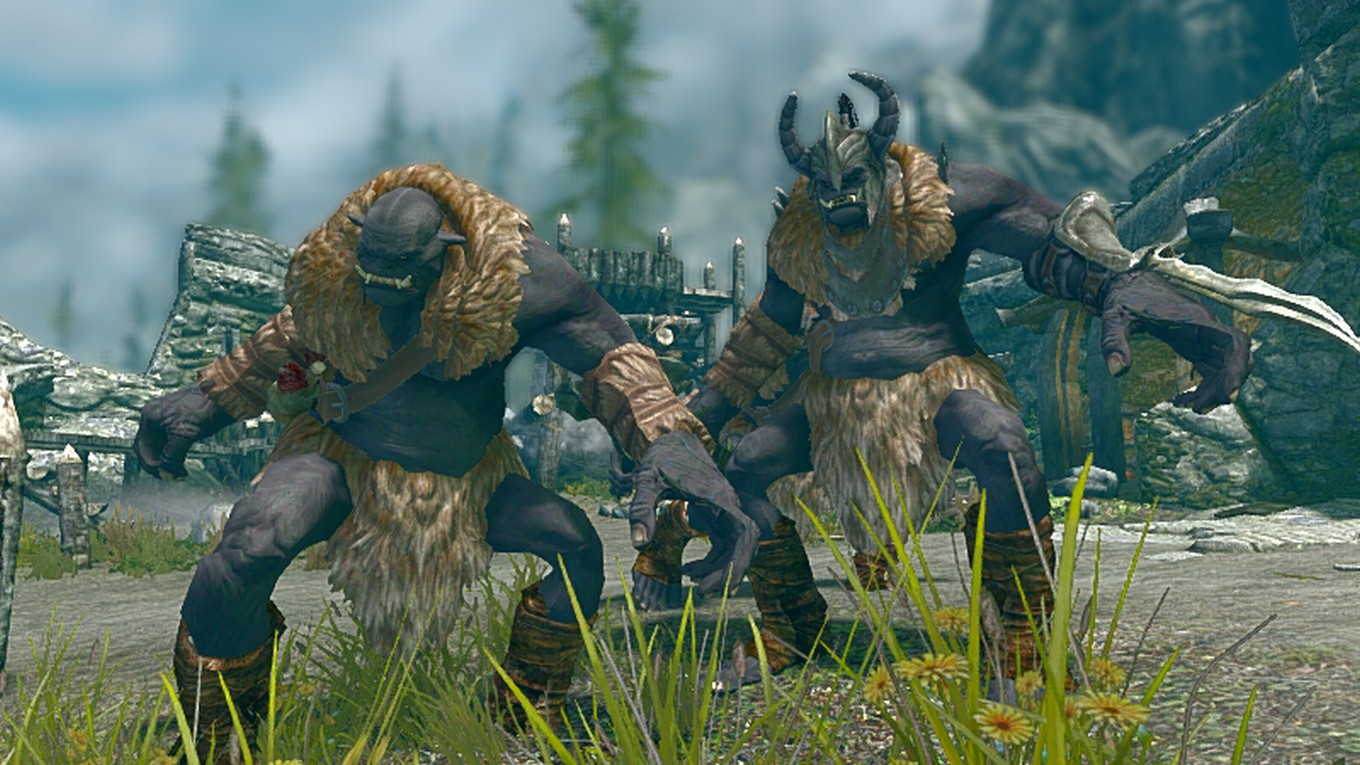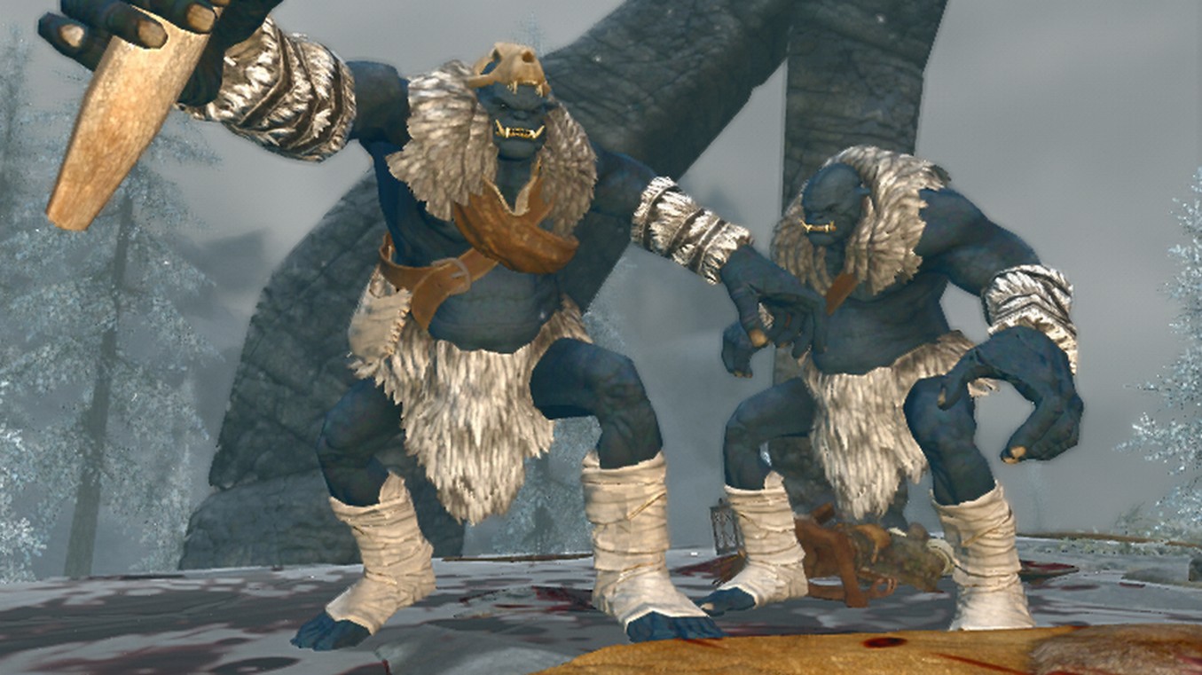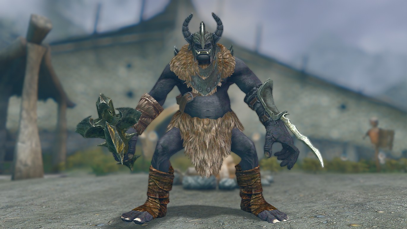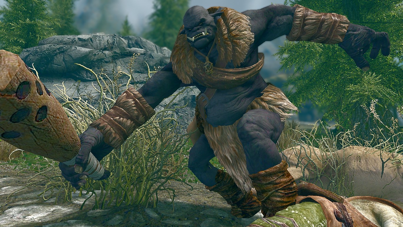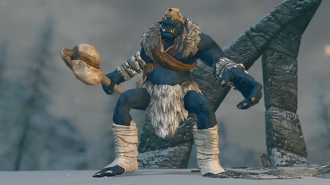 Часто орки используют огров на шахтах, фермах и охране крепостей. Огры распространены во многих провинциях Тамриэля, в том числе и в Скайриме. Здесь можно встретить 5 видов огров. Дикие обитают в пещерах, руинах и в лагерях бандитов. Бронированных огров можно встретить в крепостях орков.
