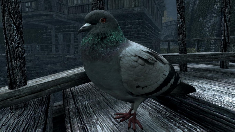 * Новый вид голубей, с обычными звуками и добычей, больше птиц и жизни для городов (самые холодные города - Виндхельм, Винтерхолд и Данстар - не имеют голубей, так как автор планирует добавить туда ворон)