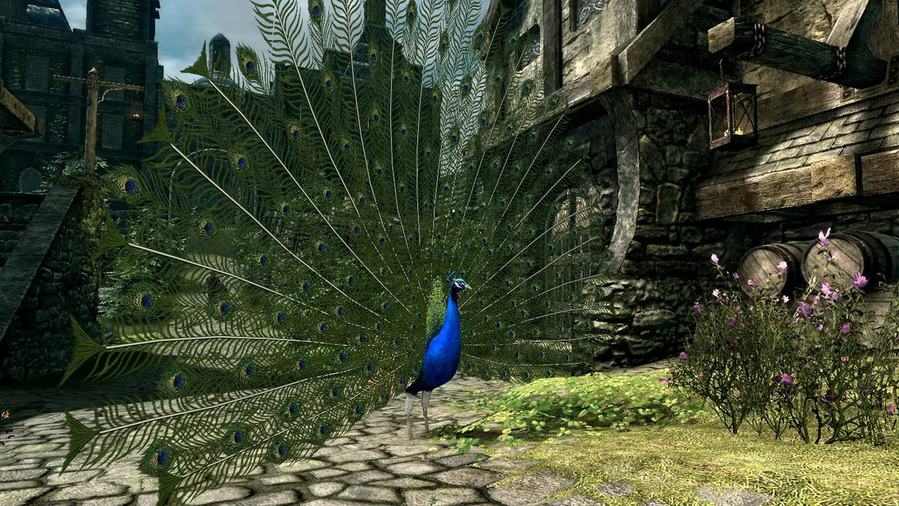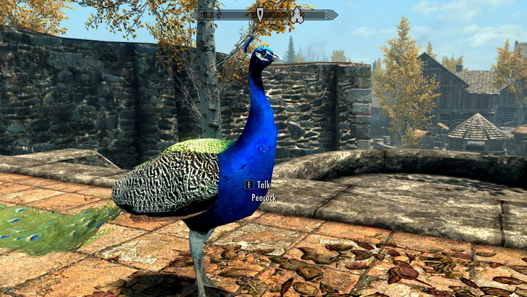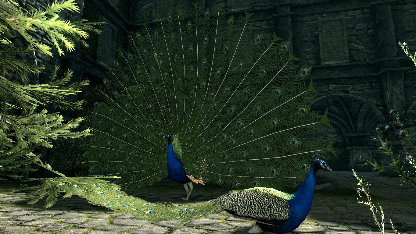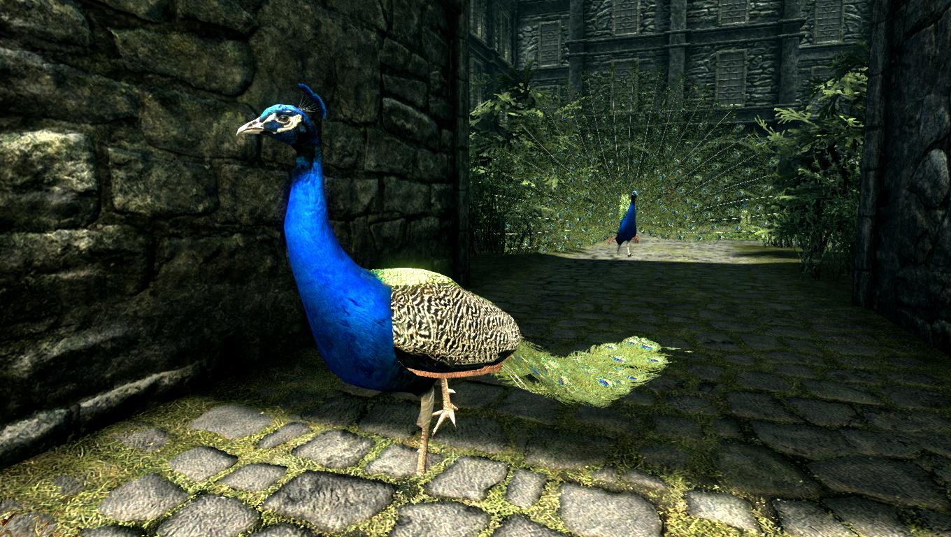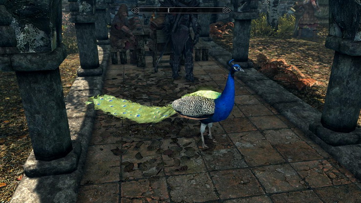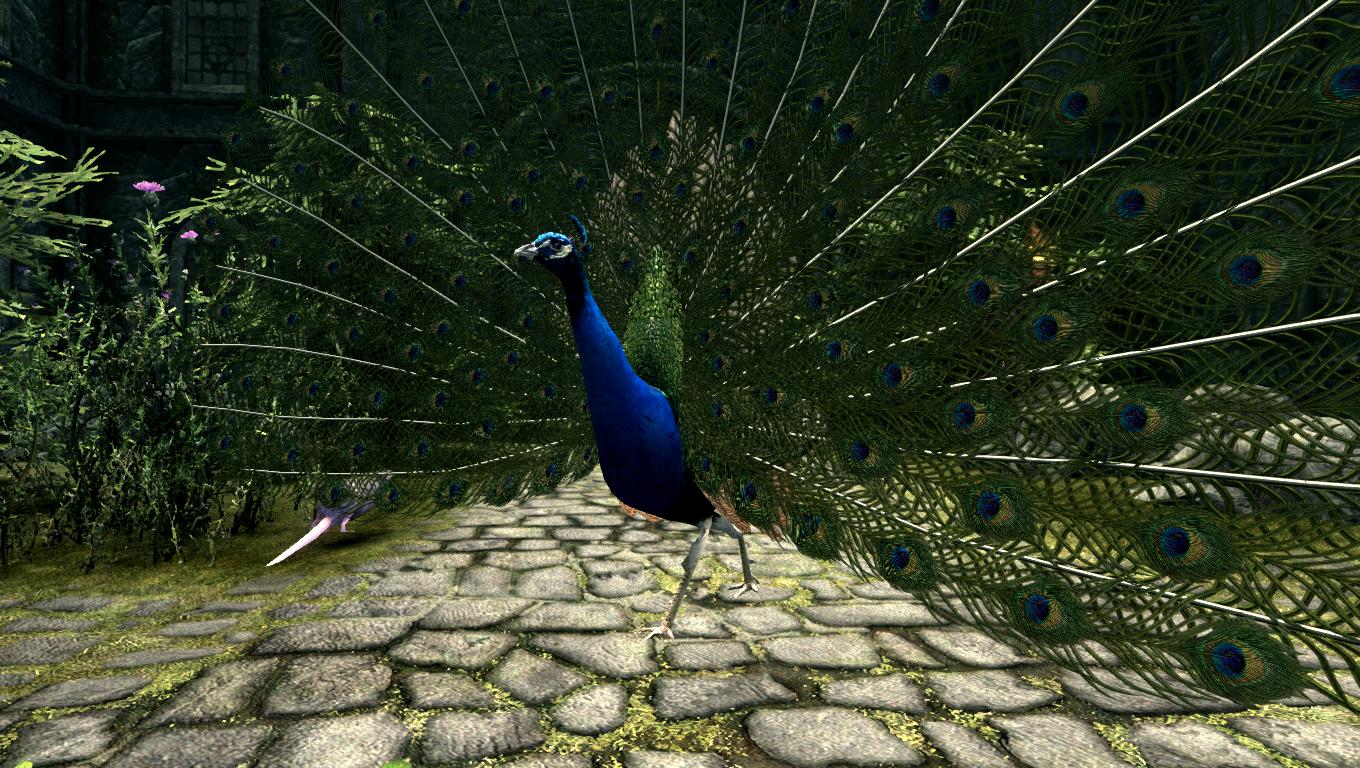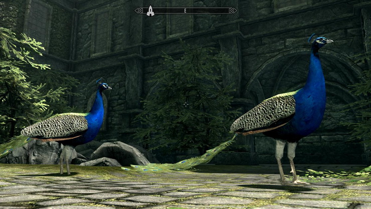 * Павлины - довольно агрессивны, некоторые из них живут в качестве домашних животных у дворян в Солитьюде и Рифтене, и это единственное место в Скайриме, где вы можете их найти.