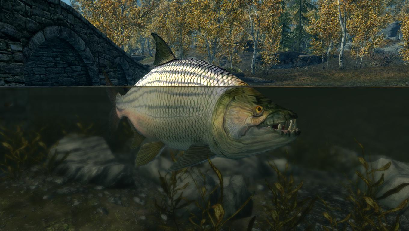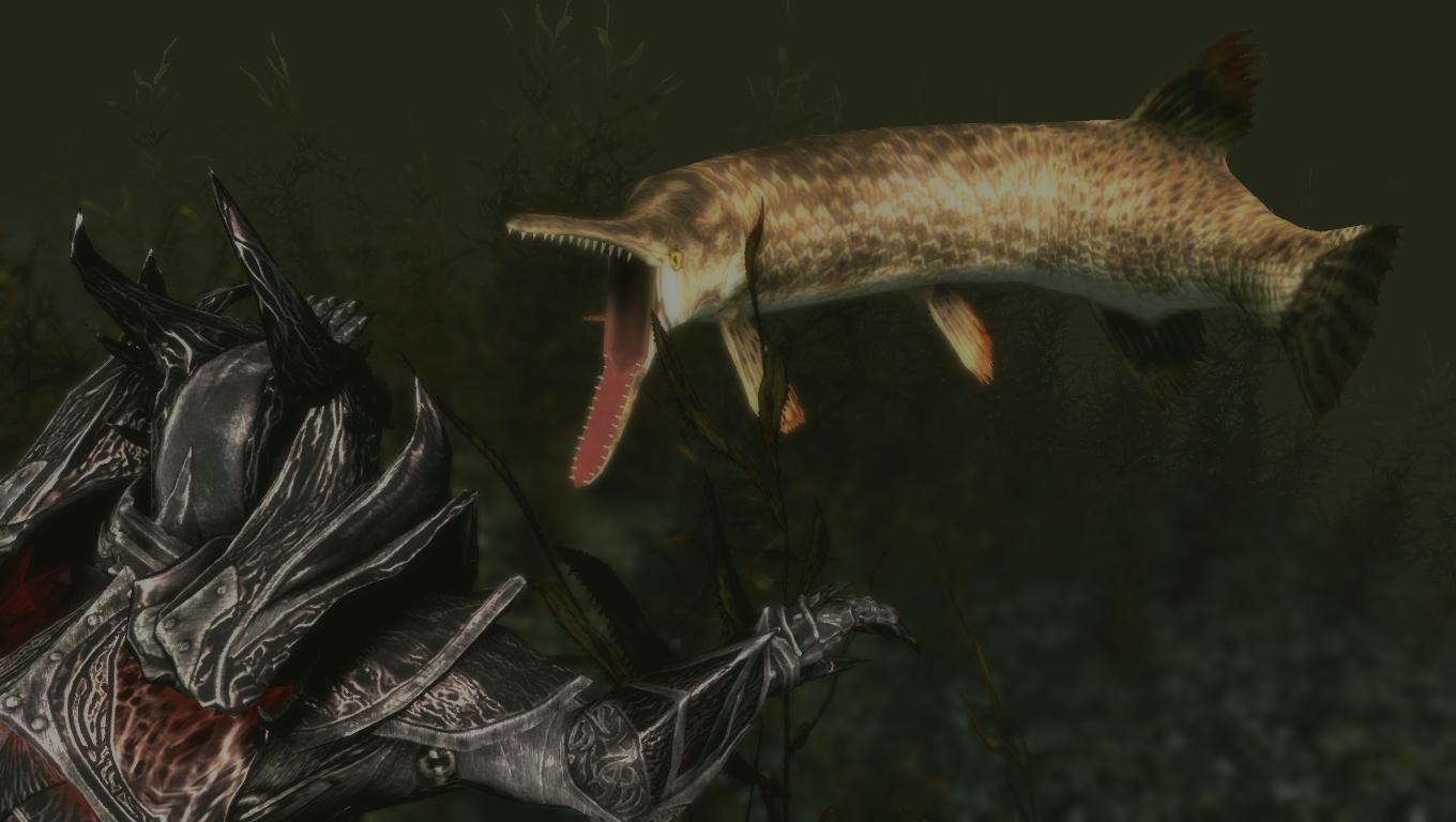 Аллигатор Гар и тигровые рыбы (а также огромная тигровая рыба Голиаф и загадочная рыба-монстр из озера Илиналта) - это большие пресноводные рыбы, называемые народом Скайрима демоническими рыбами за частые нападения на людей.