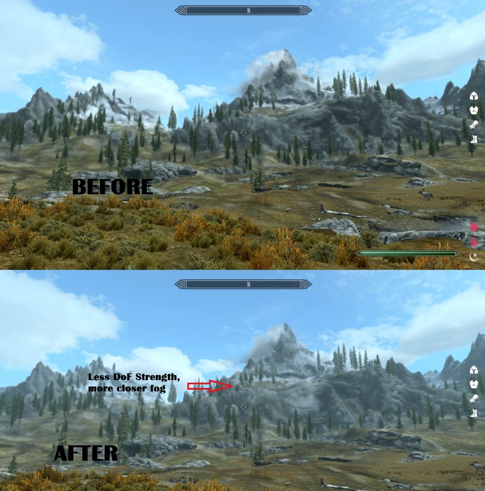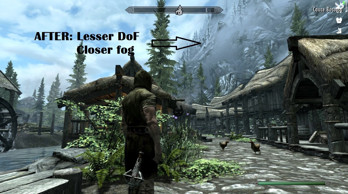 Вторая и самая важная причина - более близкая дымка позволяет скрыть уродливые LOD текстуры, которые становятся более заметными с модами, подобными Purity (обычная проблема всех глобальных переработок графики и окружения).