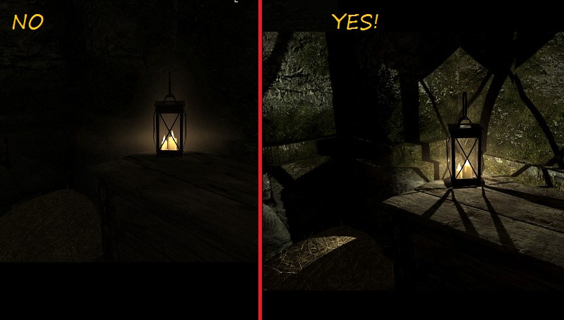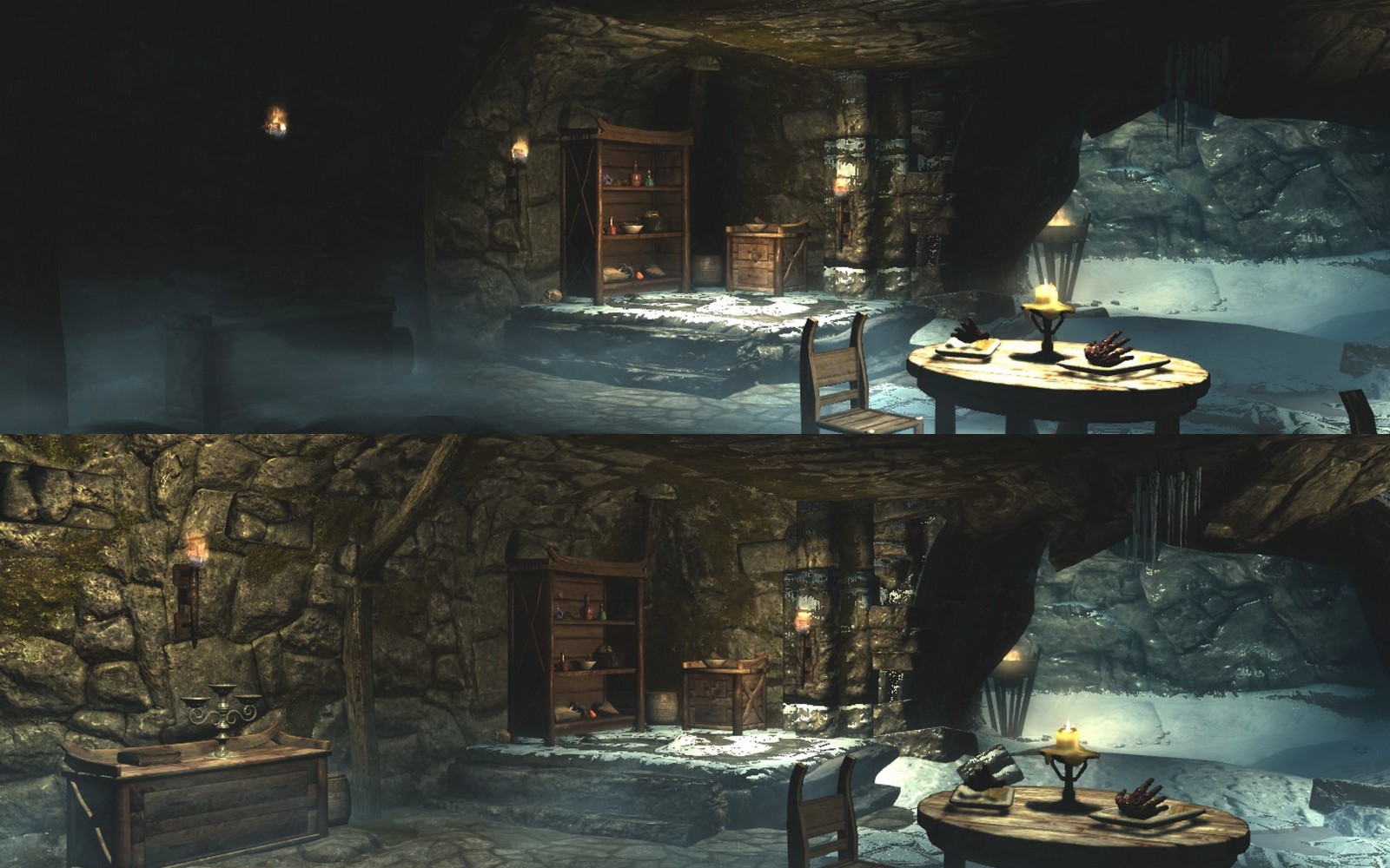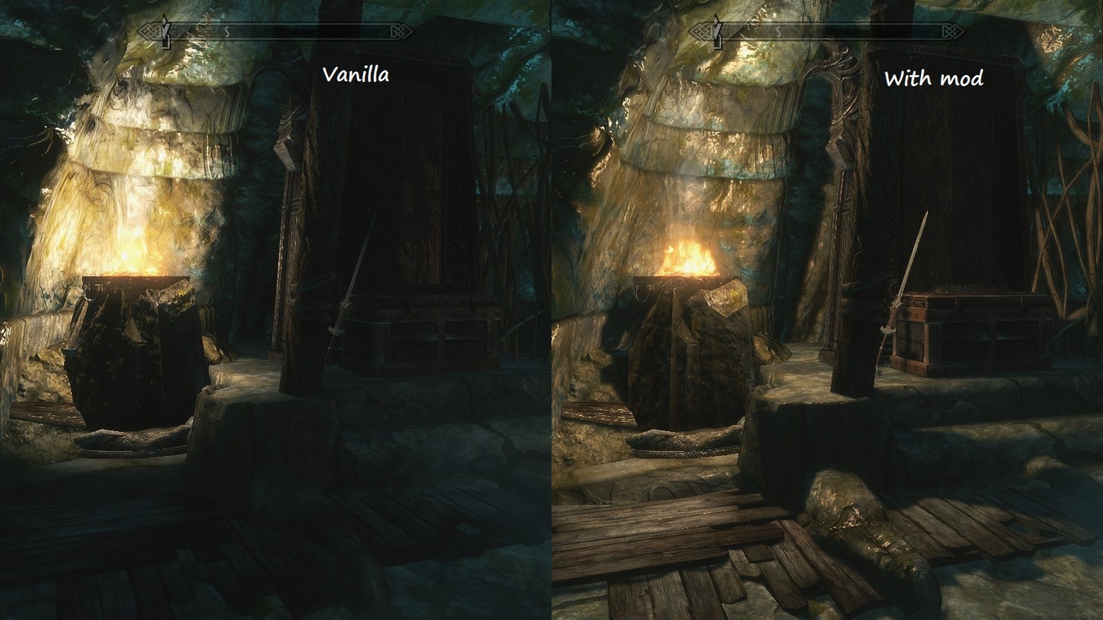 Целью данного мода является правильное расположение источников света. Возможно, вы уже замечали, что в локации может находиться, например, две свечи, но источник света при этом лишь один и он находится где-то в центре между свечами, вместо исходящего света от каждой свечи, или же вы видели горящий факел, который не давал света. Автор попытался исправить подобные ошибки, чтобы свет исходил из его логичных источников, а все источники давали свет.