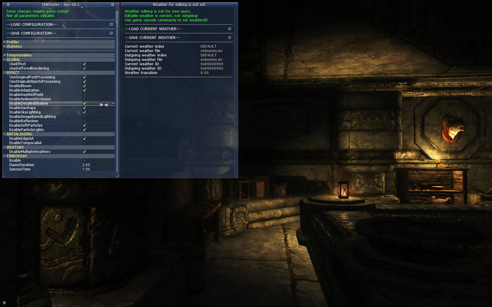 1) Нажав во время игры комбинацию shift + enter, откроется меню, где бы сможете настроить ENB прямо в самой игре, при этом практически все изменения сможете видеть своими глазами.