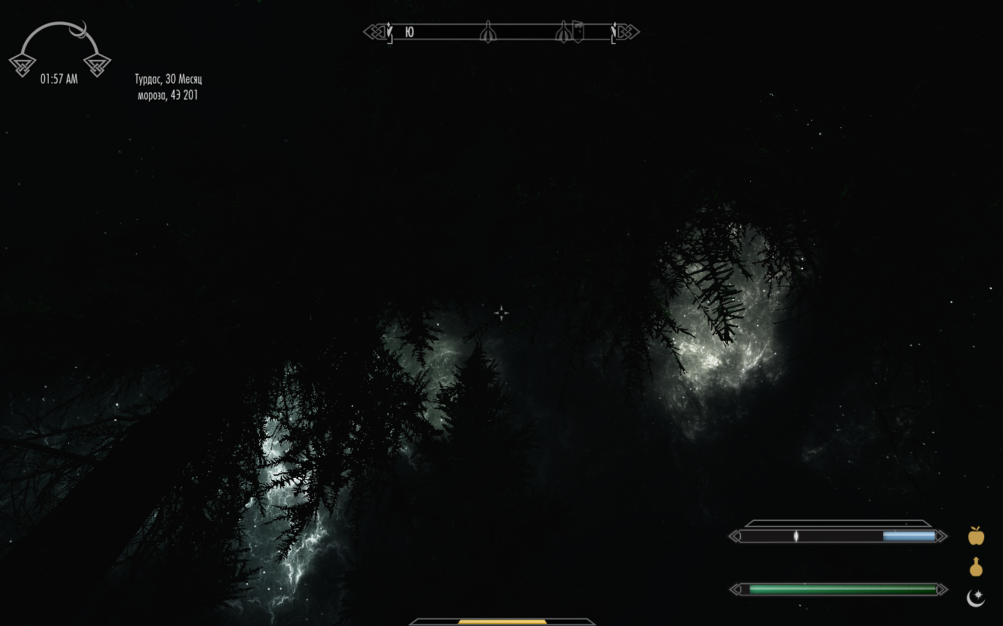 1. Может я чего-то не понимаю, но сколько ENB я пересмотрел, не в одном нет по настоящему реальных ночей. Видимо люди не были никогда в лесу, в дали от городов и фонарей. Там реально очень темно и нифига не видно дальше своей вытянутой руки. Теперь это решено. Вас ждут реально темные, настоящие ночи, если рядом нет поселений или источников света.
