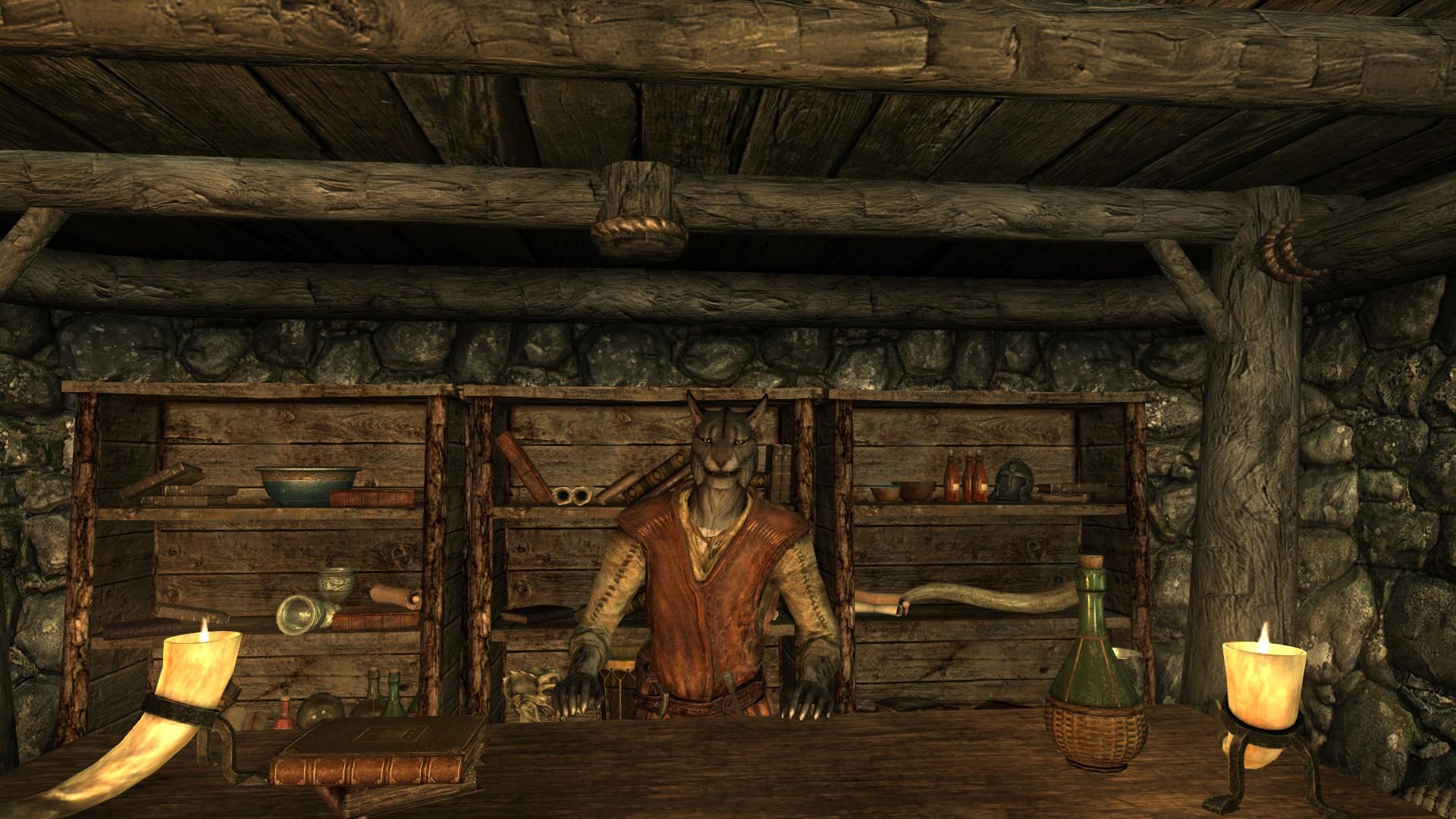 Для меня этот мод был способом получить небольшую пасхалку из Морровинда, а также предоставить милого продавца, который бы обладал уникальным инвентарём. Торговля скумой, лунным сахаром и эльсвейрским фондю должна обозначить его каджитскую натуру, тогда как разные товары, такие как чернильницы и бумага, обеспечат необходимый набор предметов для тех, кто использует мод на создание свитков и ему подобные.