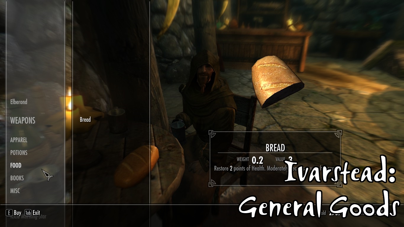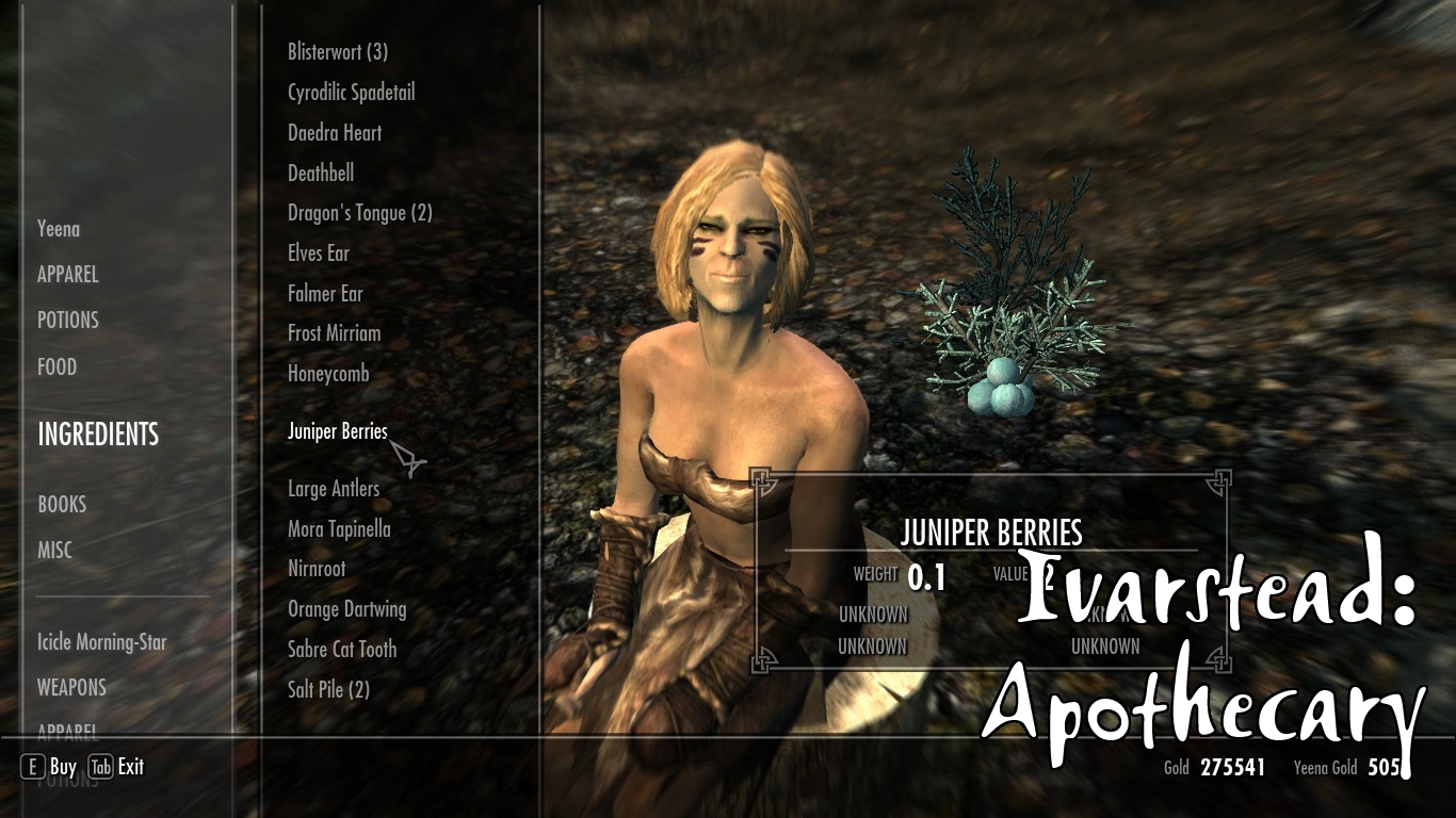 - В Айварстеде молодой эльф Элберонд открыл магазин универсальных товаров возле водопада. Его план состоял в том, чтобы заделаться аптекарем, но что-то пошло не очень хорошо, поэтому он расширил свою деятельность. Однако, это не помешало ему проводить эксперименты в алхимии. Хиллок, с другой стороны, открыл небольшую кузницу на склоне прямо над фермой. За городом, Йинна разбила небольшой лагерь, пока она находится в поисках неуловимого алого корня нирна. Она будет продавать зелья и ингредиенты. Сможет ли она добиться успеха в ее поисках? (Здесь есть отсылка к другим модам автора)
