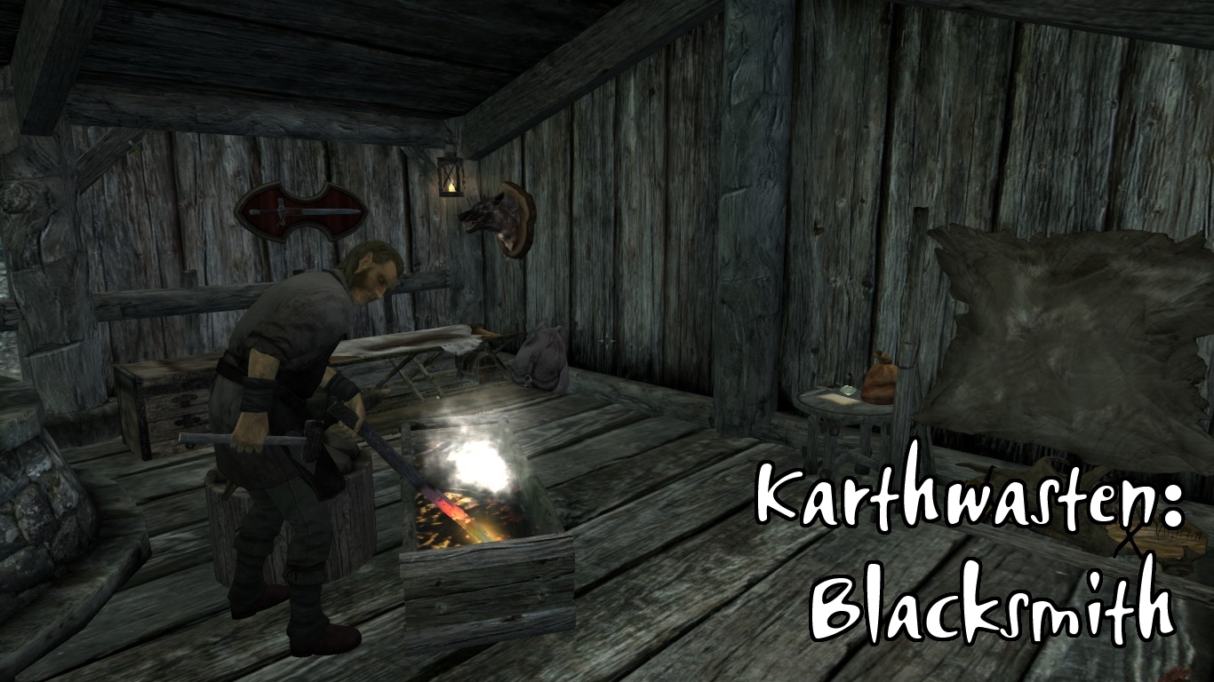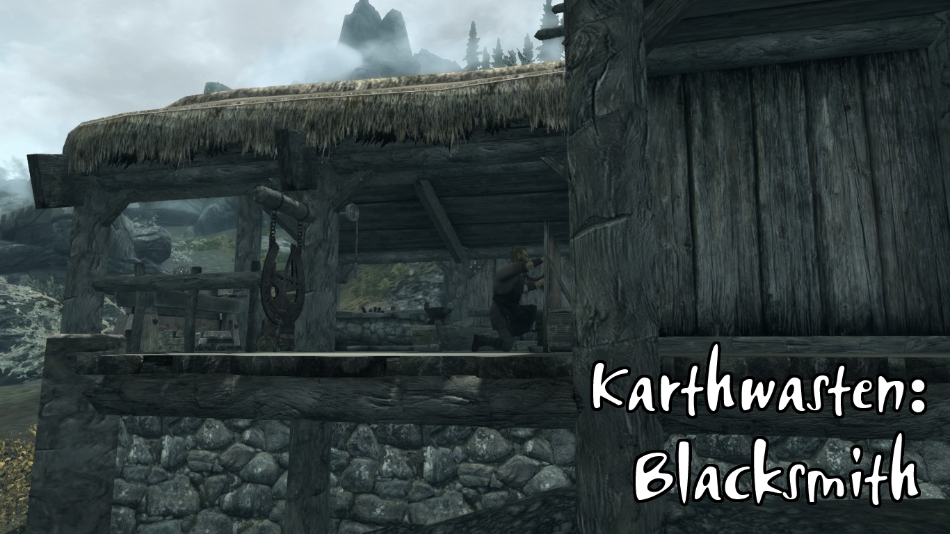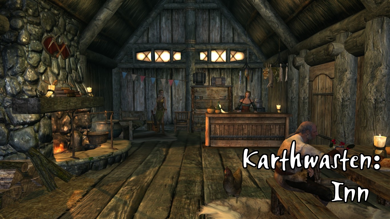 - В Картвастен было добавлено: таверна, аптекарь и продавец товаров общего назначения, кузнец. Поскольку в самом Картвастене места не много, дело обстоит так: таверна располагается в центре поселения, а в её подвале расположилась семейная пара из алхимика и торговки. Кузнец открыл своё дело рядом с шахтёрскими бараками, которые автору пришлось немного переделать для удобства. (кстати, если у вас установлен мод «Расширение Картвастена» от Arthmoor, кузница немного наедет на крышу дома одного из жителей, что вызовет только внешнее непотребство, но не скажется на функционале)