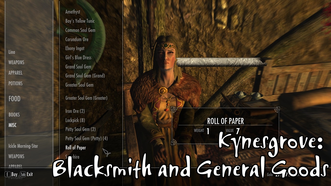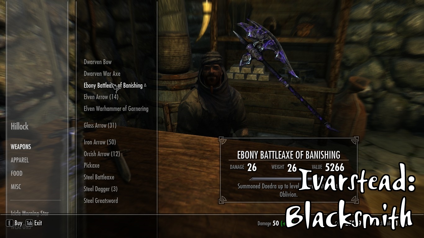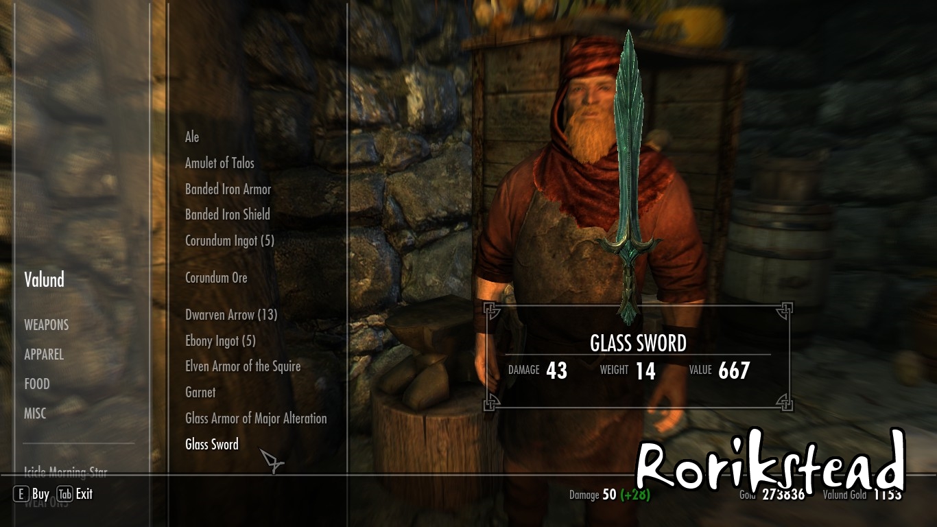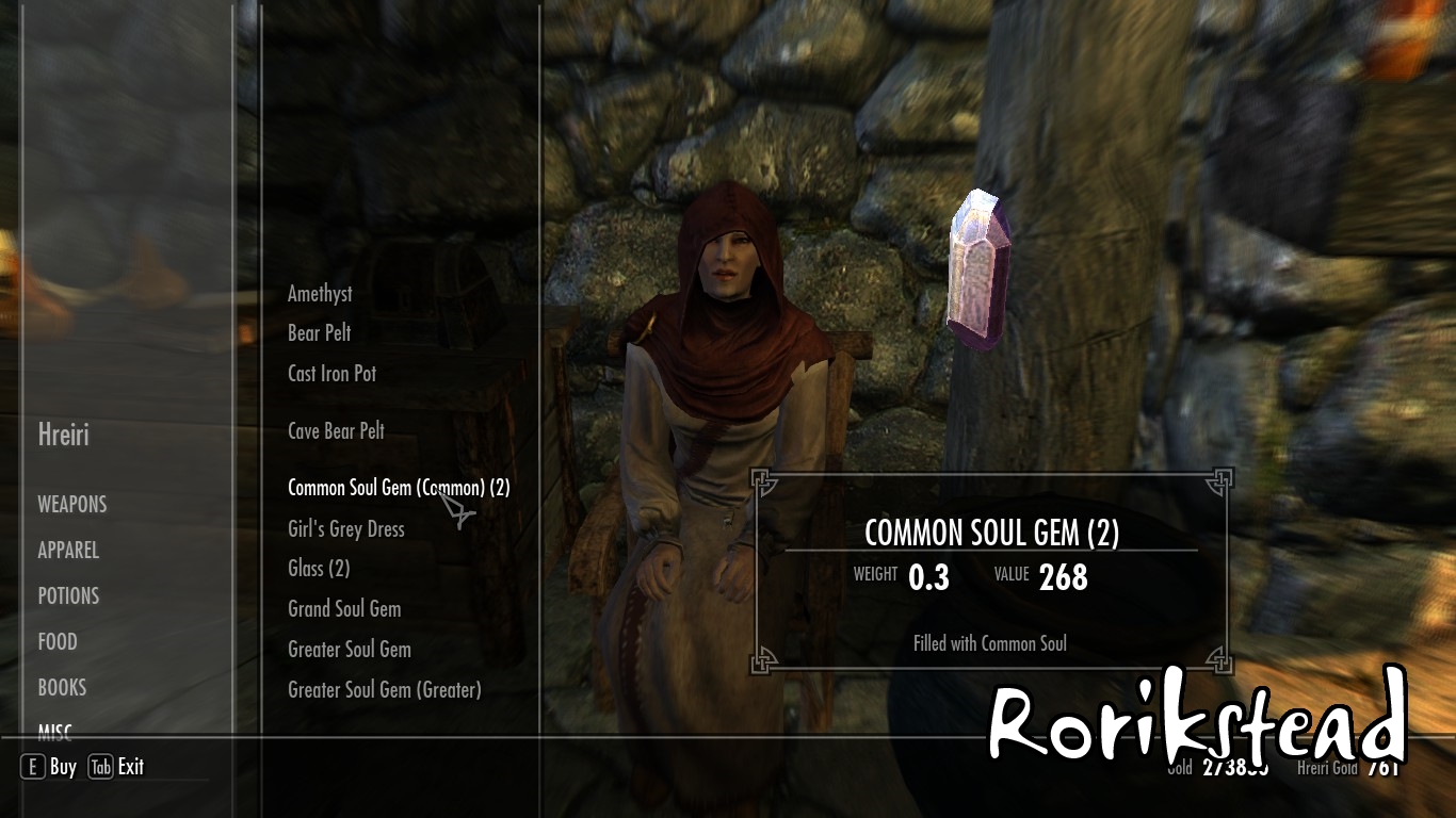 - В Рорикстеде, на окраине, вы встретите Валунда, кузнеца, и его жену Хрейри, торговку. Хрейри в прошлом странница и не очень ладит с жизнью в тихом городке, поэтому она может показаться немного грубоватой.