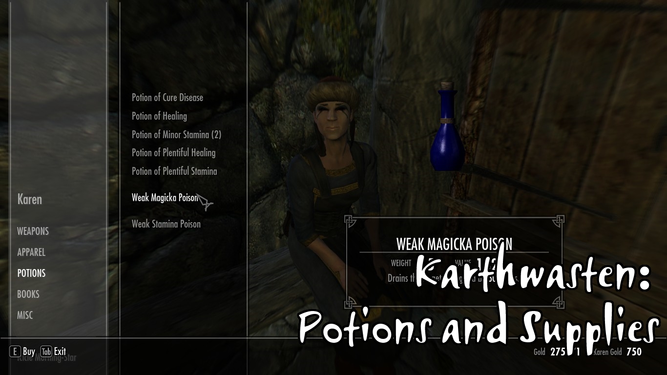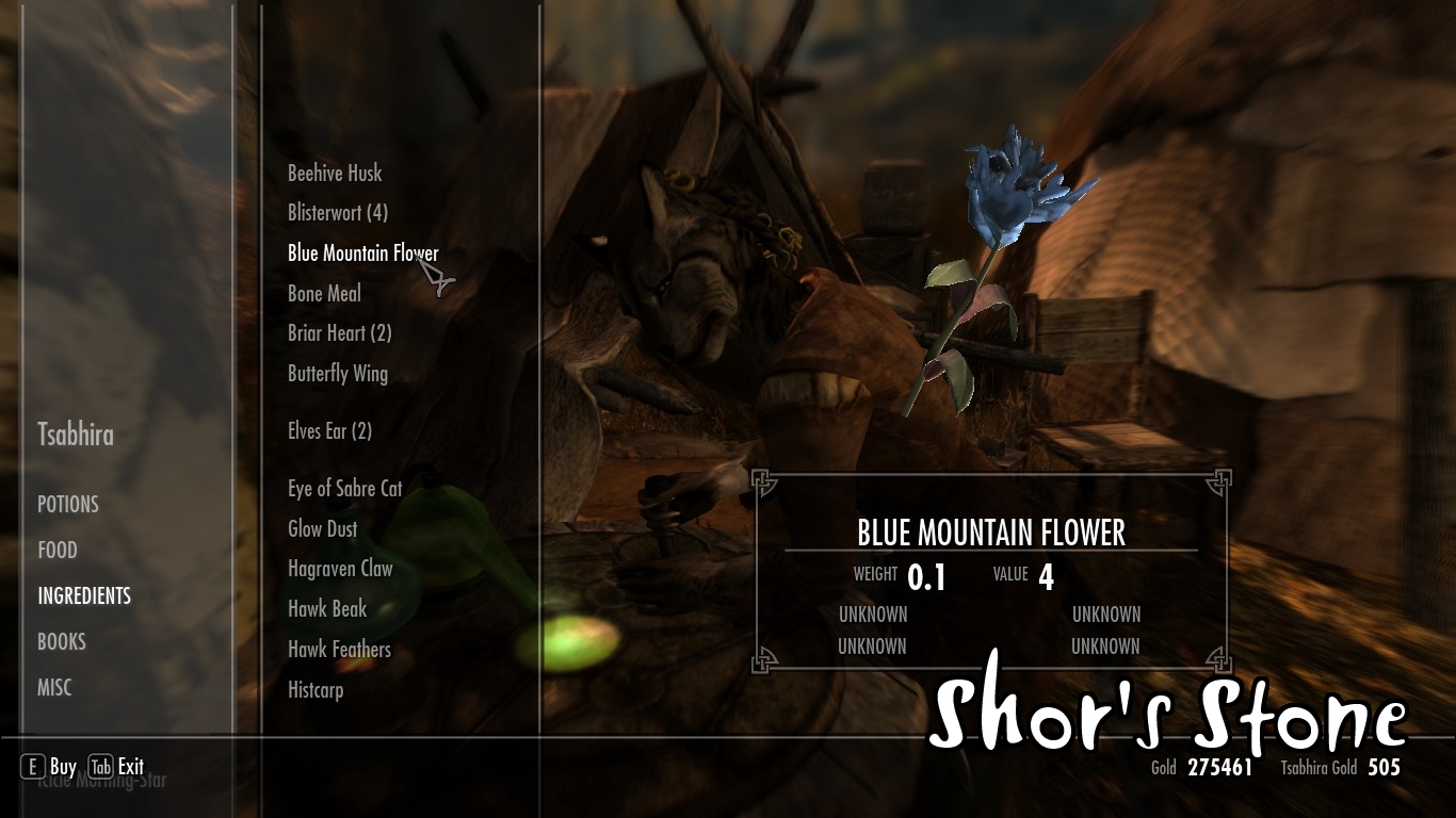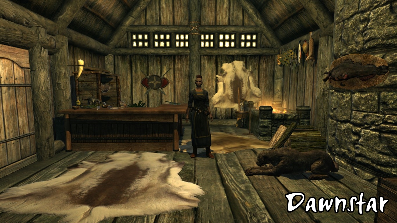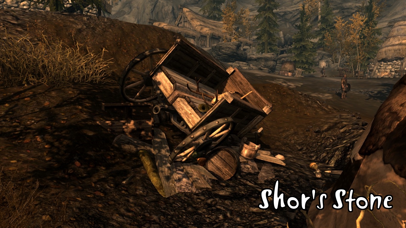 - У Камня Шора каджит и его дочь попали в трудную ситуацию после поломки их повозки. Чтобы свести концы с концами, дочь будет продавать зелья и ингредиенты, в то время как отец поторгует товарами общего назвачения. Он также может сдать вам небольшую палатку, если будет необходим отдых.