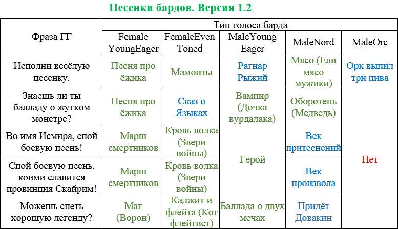 - конечно, не совместим с другими модами, заменяющими песни бардов или квест по их заказыванию