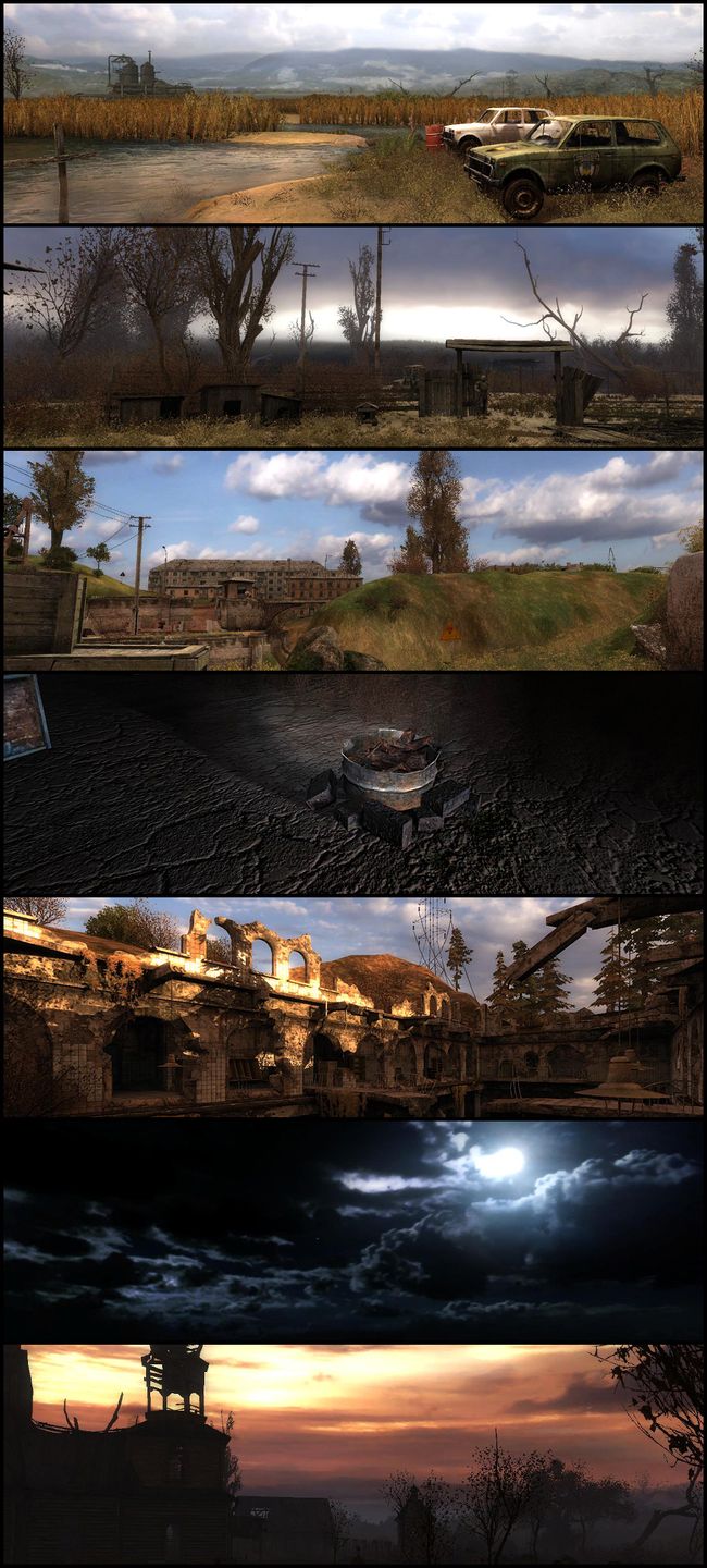Самая известная особенность - введение совершенно нового набора LOD для пейзажа, которые помещают игрока в центр большого открытого мира, а не на ограниченную карту, как раньше. Оригинальные фотографии, используемые в этом проекте, были сняты нашей студией во время поездок в российский индустриальный город Медногорск, который здорово напоминает тогдашнюю Припять. По возвращению в студию мы использовали свои познания в графическом дизайне для редактирования наших реальных снимков окружающей среды, чтобы они близко соответствовали вымышленной окружающей среде Зоны в игре.