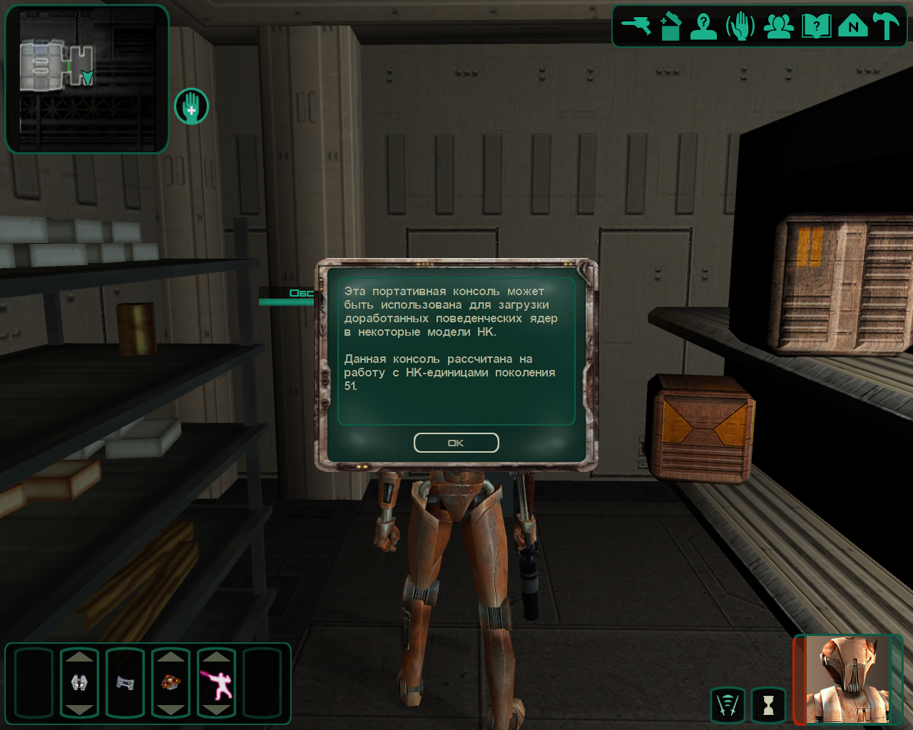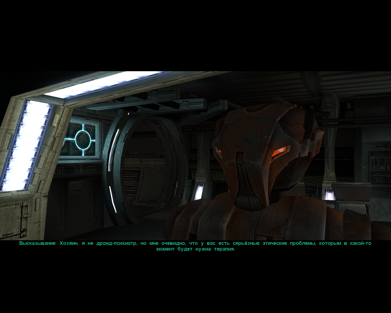 - Подчищена диалоговая часть у персонажей вроде иторцев на Телосе и Ханхарра, выхолощен хлам из диалоговой части на фабрике дроидов HK.