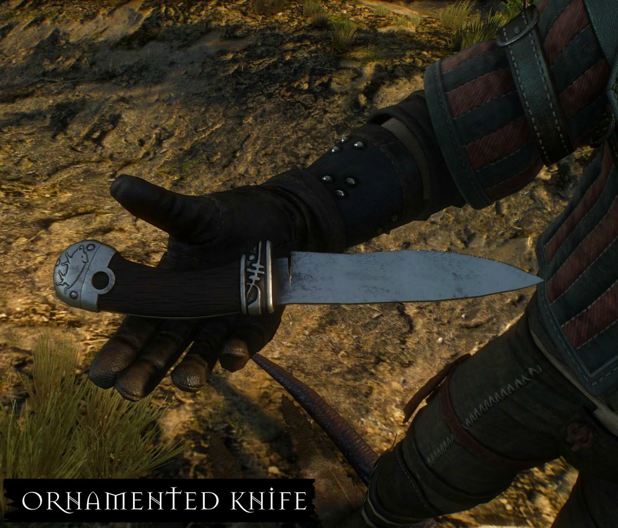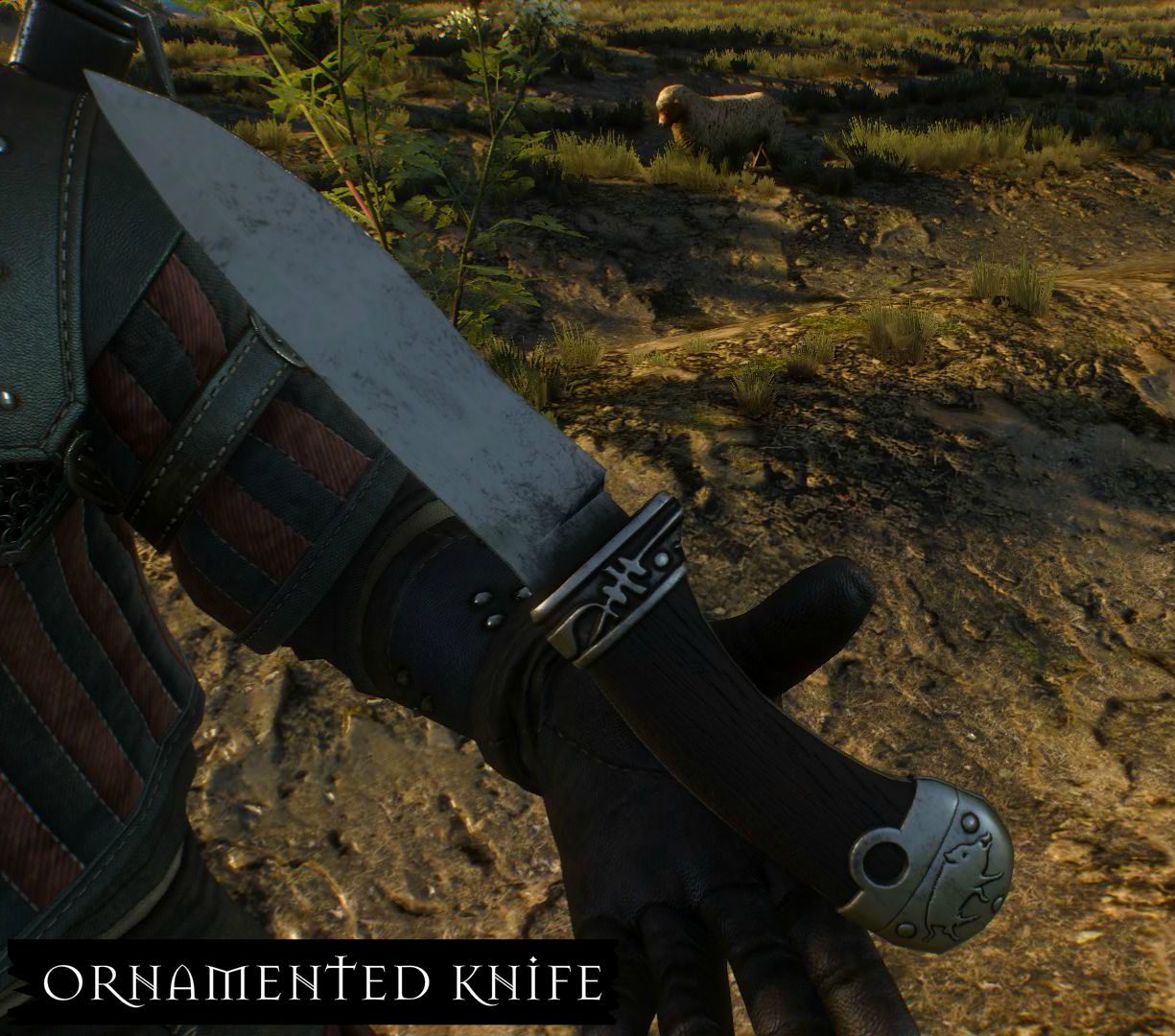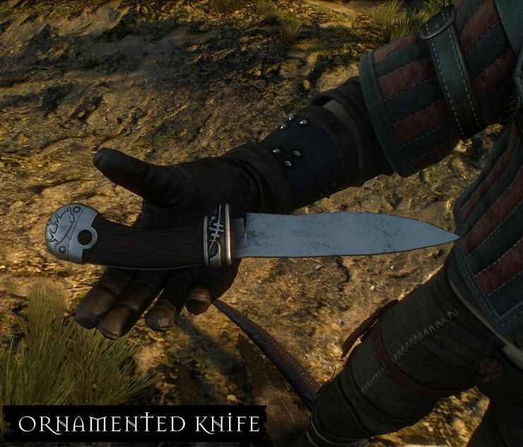 Изменяет внешний вид ножа Геральта. А архивах две версии: охотничий и украшенный.