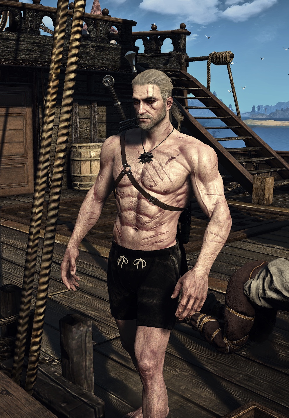 Изменяет внешность Геральта, приближая его больше к книжным канонам, по мнению автора, конечно.