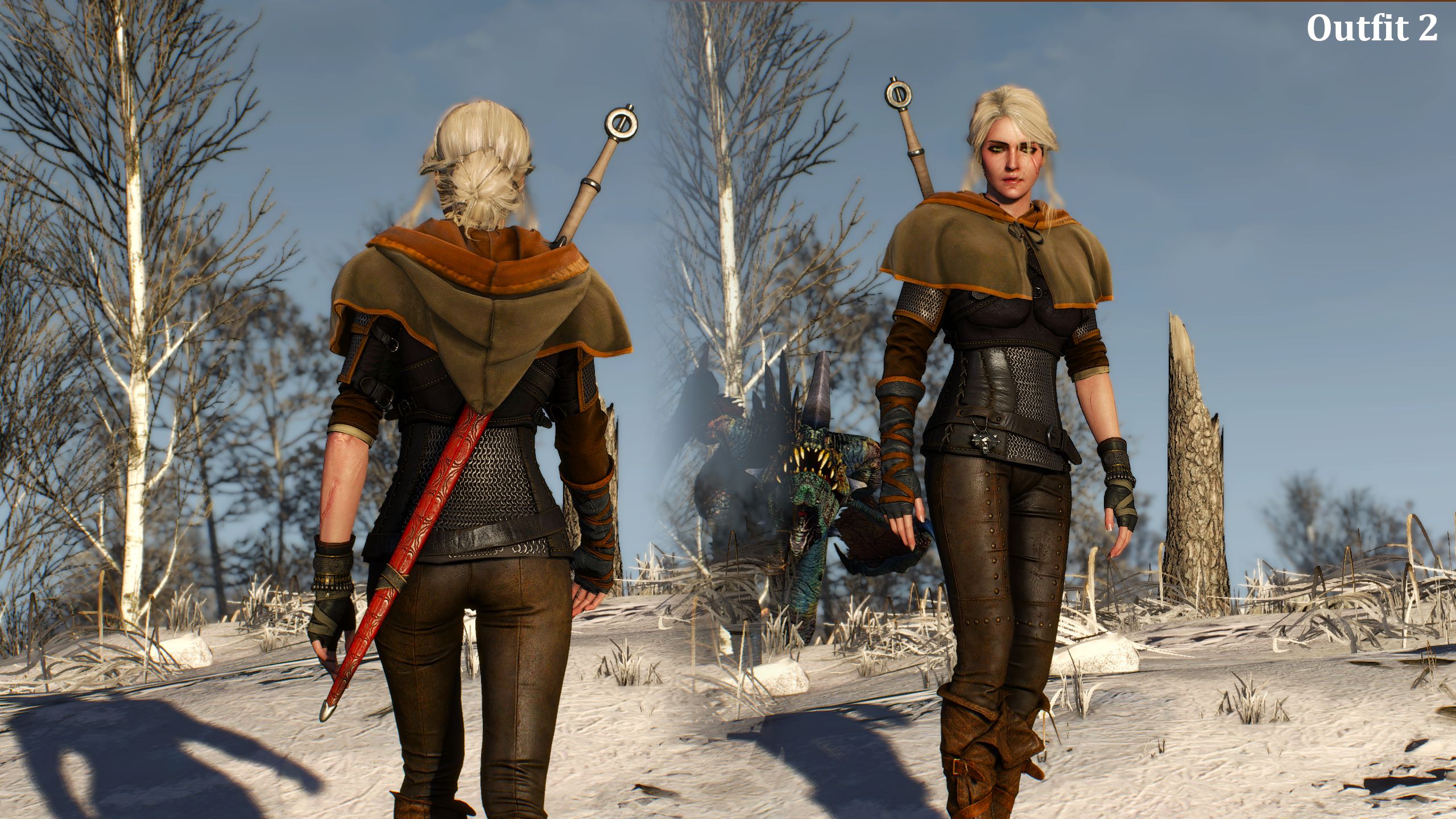 Ciri Viper Armour Collar and Fur - Outfit 2 — то же что и Outfit 2, только заменяет накидку на меховой капюшон/воротник.