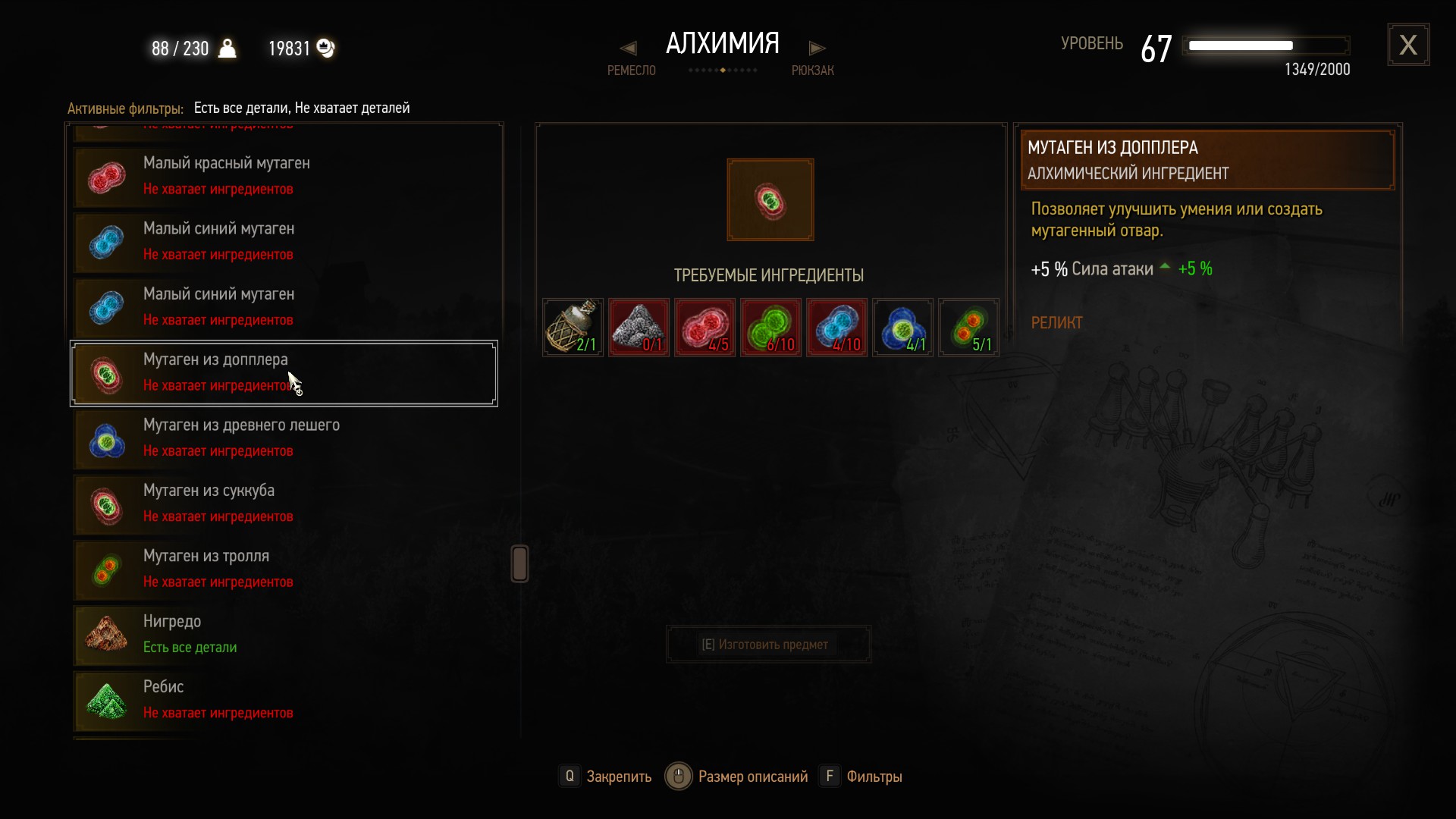 Позволяет скрафтить мутагены суккуба, допплера, лешего и тролля из других мутагенов.
